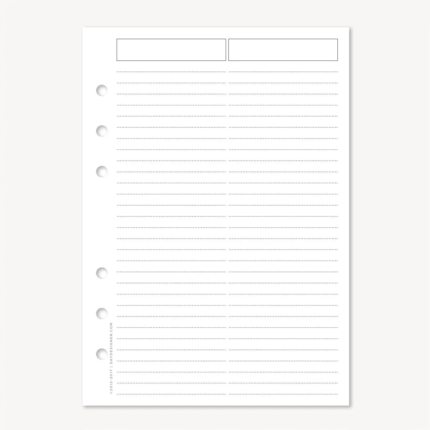 Update and refill your 6-ring A5 system year after year. Undated lined notes pages for lists, ideas, and meeting notes. Thick paper.