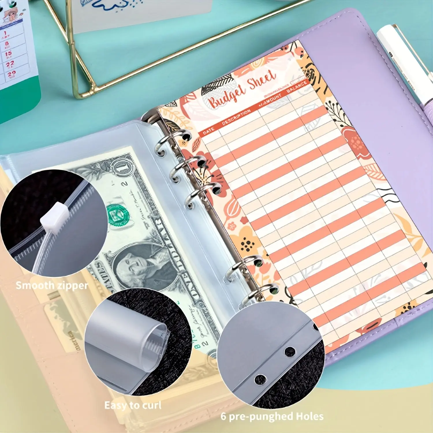 Silk cover Budget Binder with Money-Saving Challenge, Money-Saving Binder with Cash Envelopes, Expense Sheets, Challenge Tracker & Category Labels, Envelope Savings Challenges Book for home/office/school, important paper