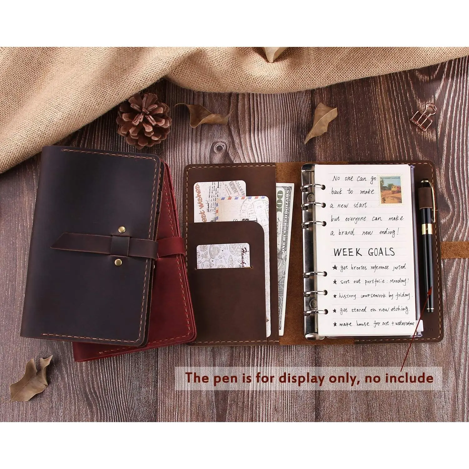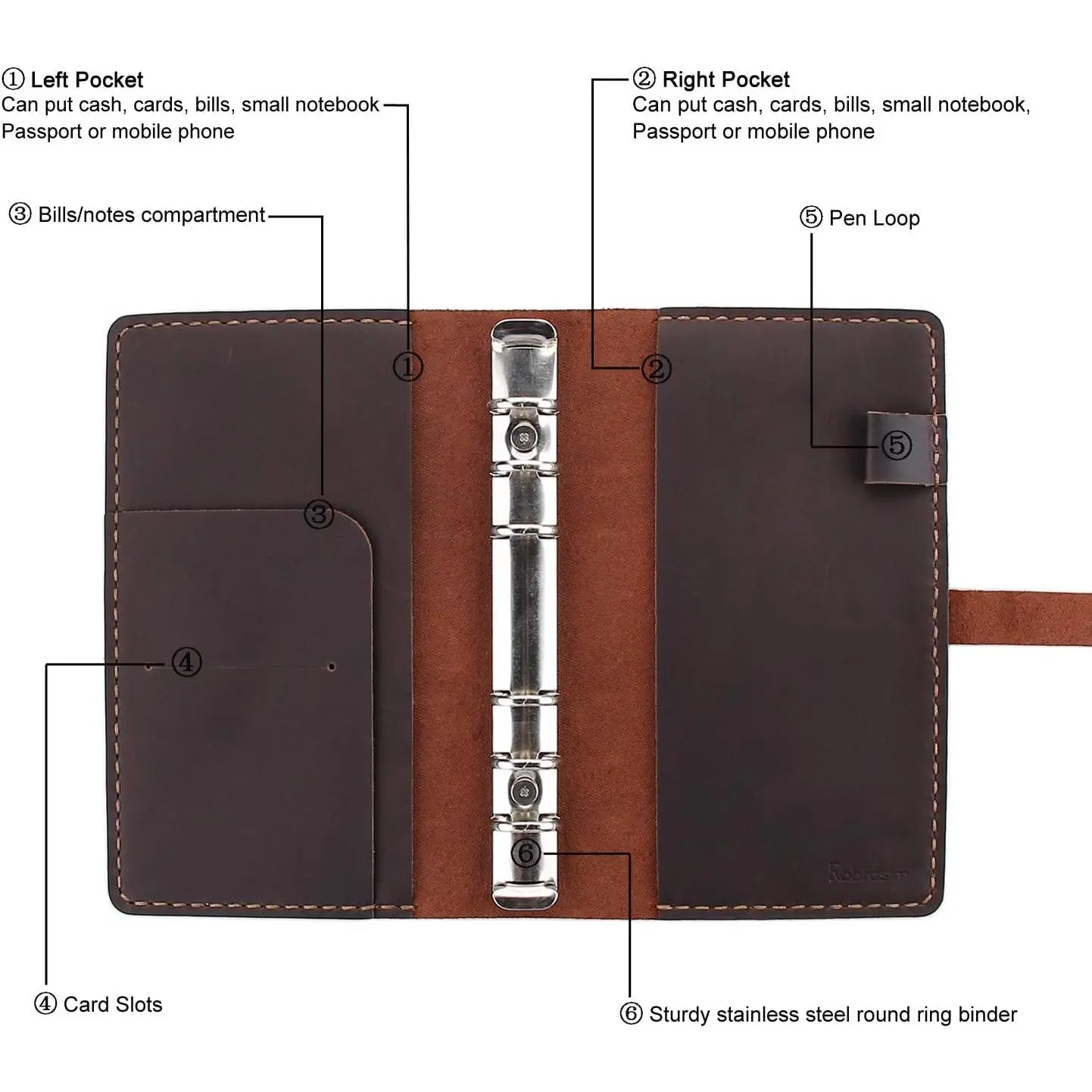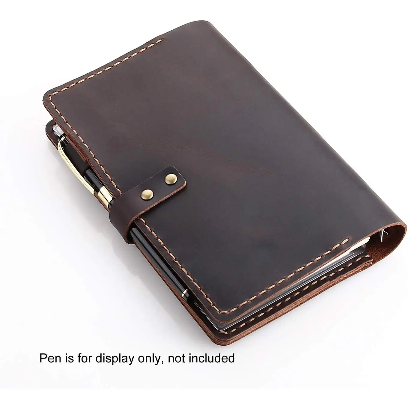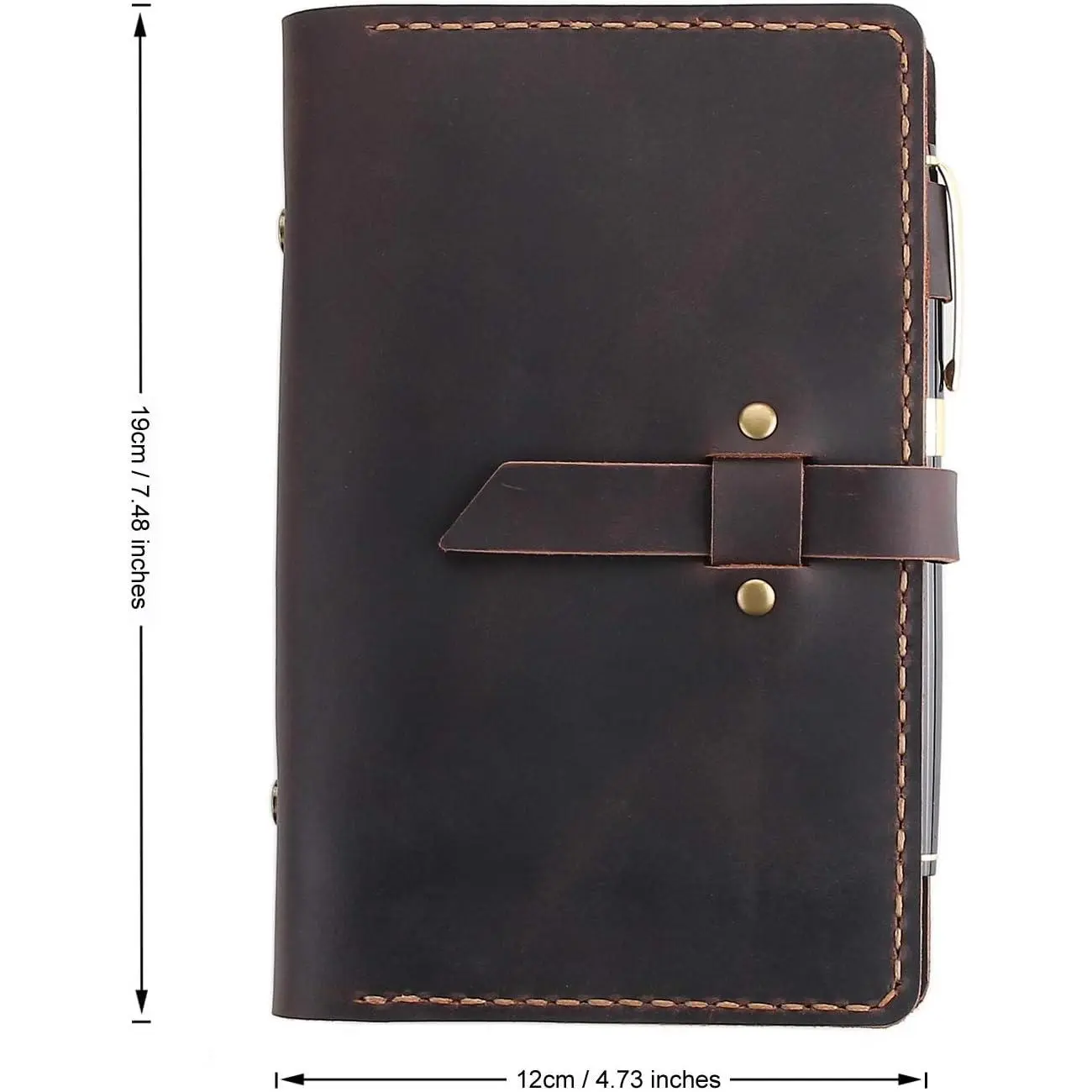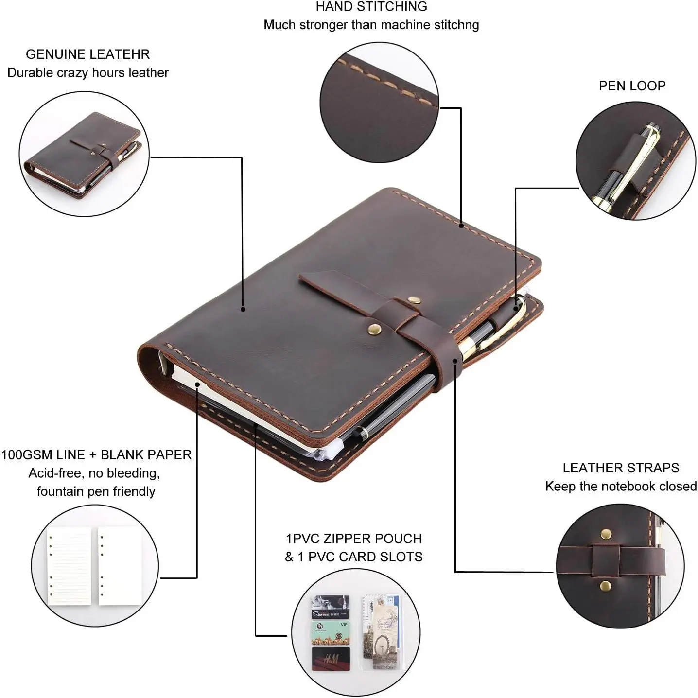 DESIGN - Designed with leather lace to keep the leather journal securely closed, the notebook cover edge side has the pen hold to the pen from falling. Sturdy stainless steel round ring binder let pages can be resumed, removed, reinserted, and refilled. It will be reordered and customized by your need.