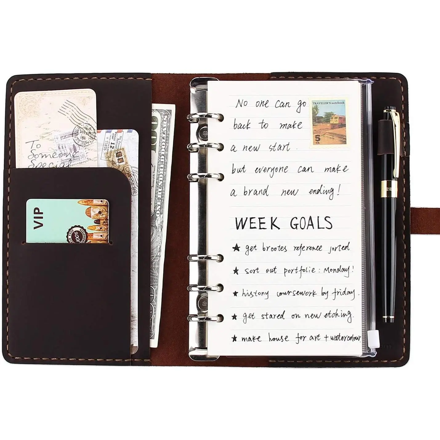 MULTI FUNCTION - Elegant design featuring convenient, holds everything you need for a meeting or traveling - pen, business cards, phone, receipt, travel tickets. Two big interior pockets for improved organization and storage, one card slots & one bills/notes compartment, easy to carry your commonly cards or notes/receipts. Each leather notebook also come with 1 PVC zipper pouch & 1 PVC card slots that have more space to hold business cards, notes, receipts and other small paper treasures.