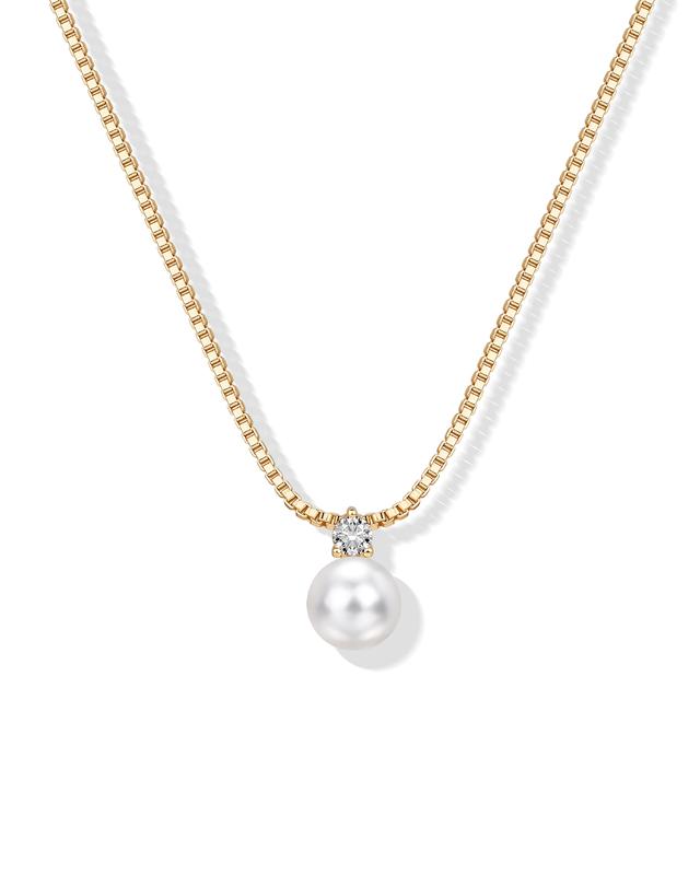 ·Measurement: Pearl: This necklace is 16" in length with a 2" extension. Its pendant is a handpicked AAA+ quality 7.5-8.5mm button freshwater cultured pearl.Pearl & CZ: Featuring an 8MM pearl and 3.2MM CZ accent. This dainty pearl necklace with a pearl gold necklace finish comes on a 16" + 2" adjustable box chain for a perfect fit.