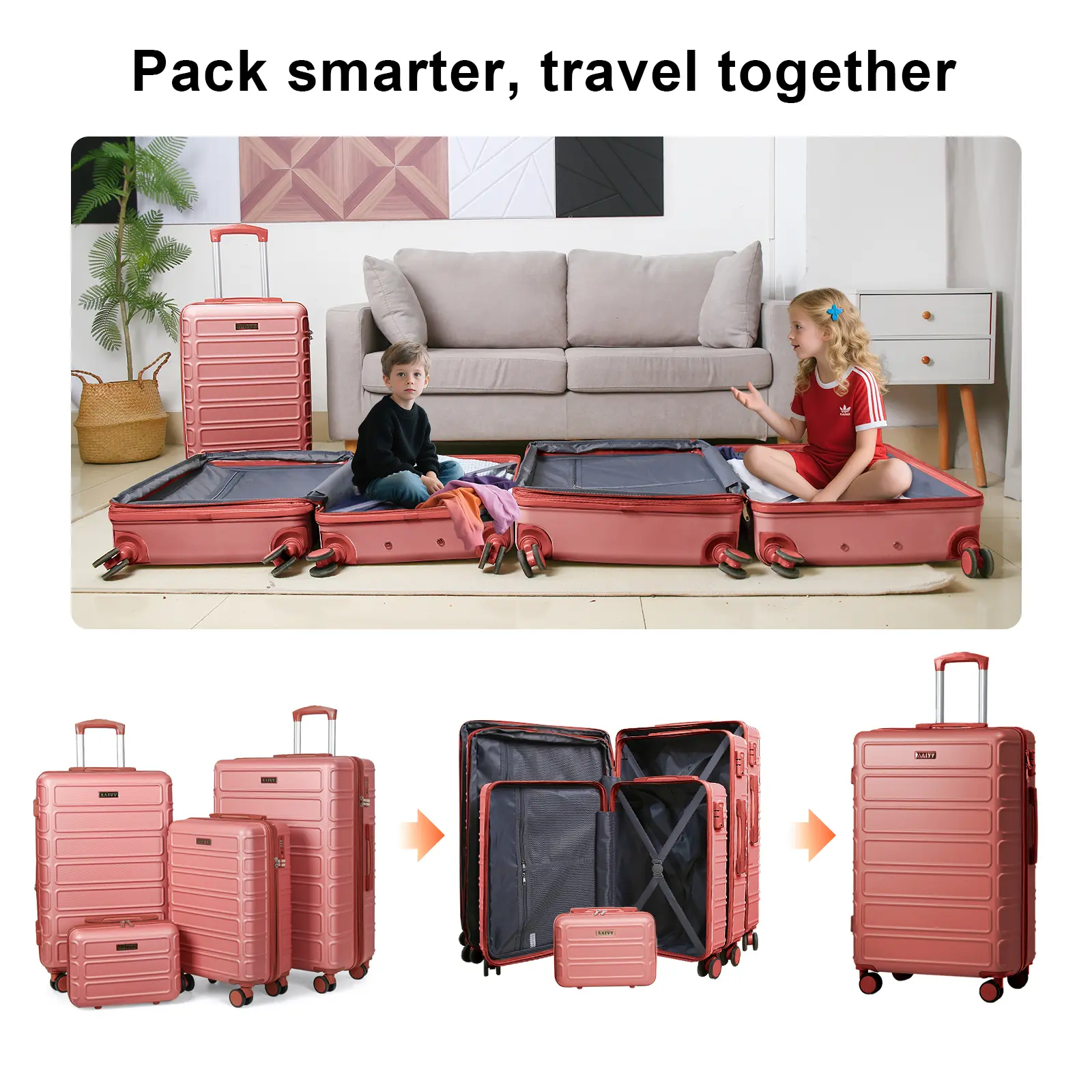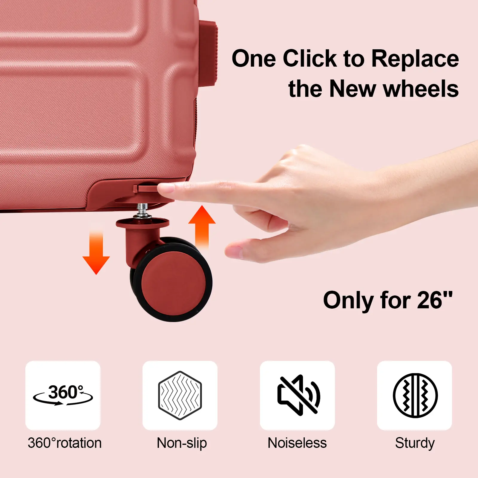 TIPS: The wheels of the 26-inch suitcase are inside the 13-inch organizer bag