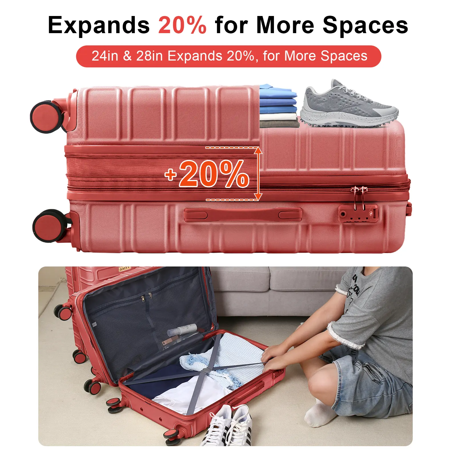 Expand your travel options with the AAIVV 4-piece set! The 28-inch and 26-inch suitcases offer 20% more capacity when expanded. The 20-inch carry-on meets airline requirements, while the 13-inch fits domestic carry-on size. This set includes capacities of 13, 20, 26, and 28 inches. Perfect for students heading back to school.
