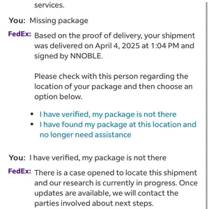 Paquete no entregado tengo pruebas que FedEx nunca me entregó nada solo me enviaba notificaciones y también traté de comunicarme con ellos pero no me ayudaron en nada …. Muy mala experiencia en atención al cliente … y nada seguro el envío 📦 mala experiencia chicas tengan cuidado 👀 es frustrante !!