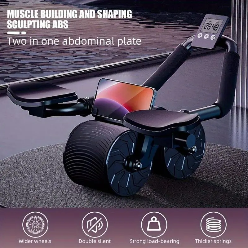 Ab Roller with Timer and Rebound Spring – Includes Knee Mat for Home Core Training