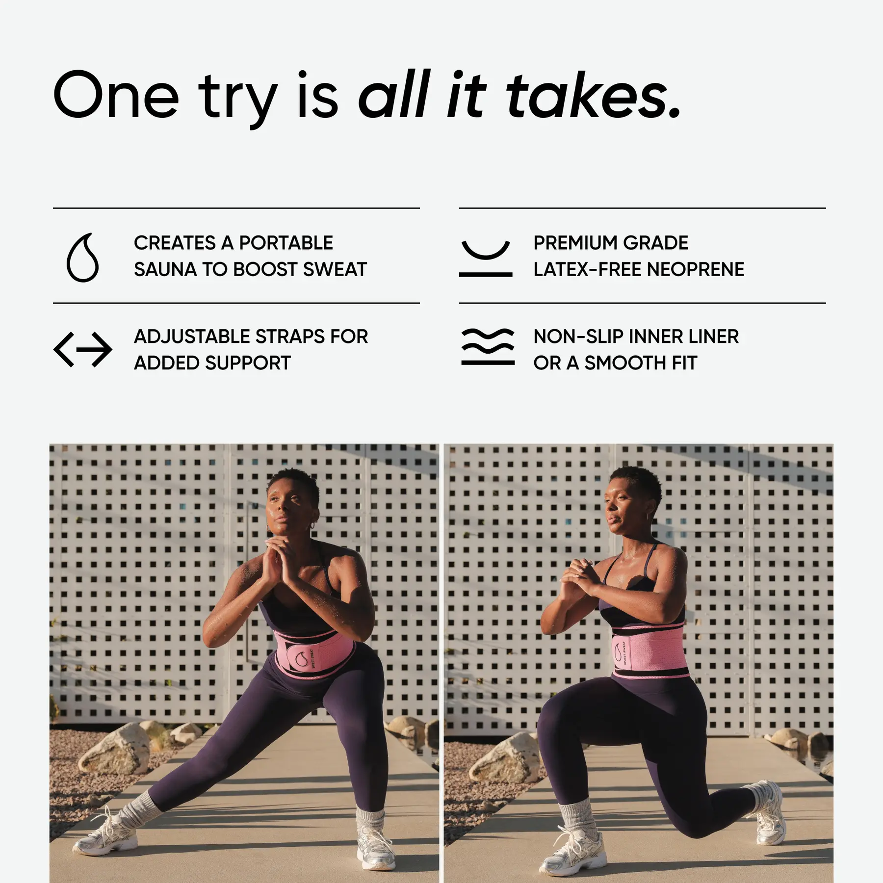 Love it! I sweat so much with just this on alone!! Carry a towel with some sort of antibacterial spray to wipe it off after every use! I let it air out in my backseat with the windows down because it definitely might start to smell if you don’t! Bc you SWEAT A LOTTT IN IT. Air drying it in 1 photo