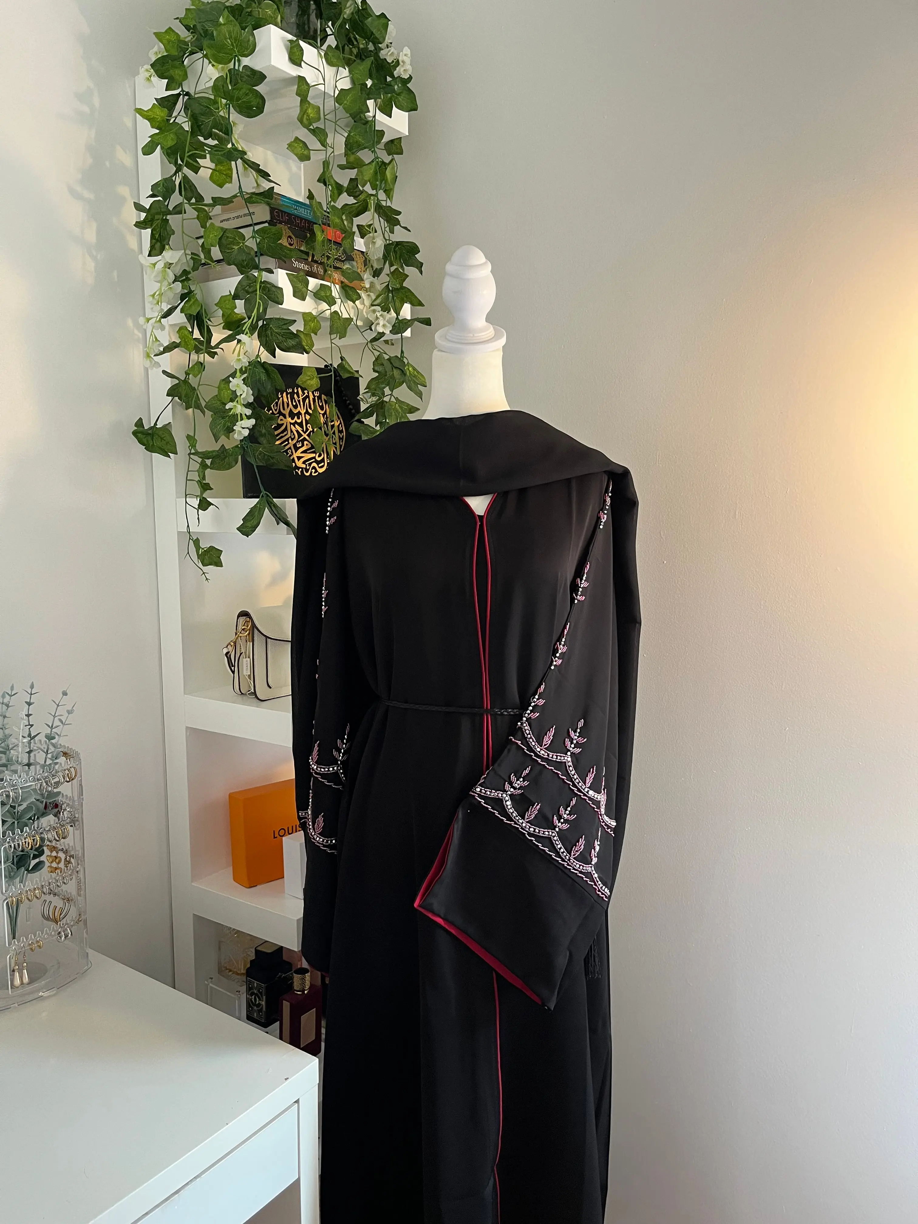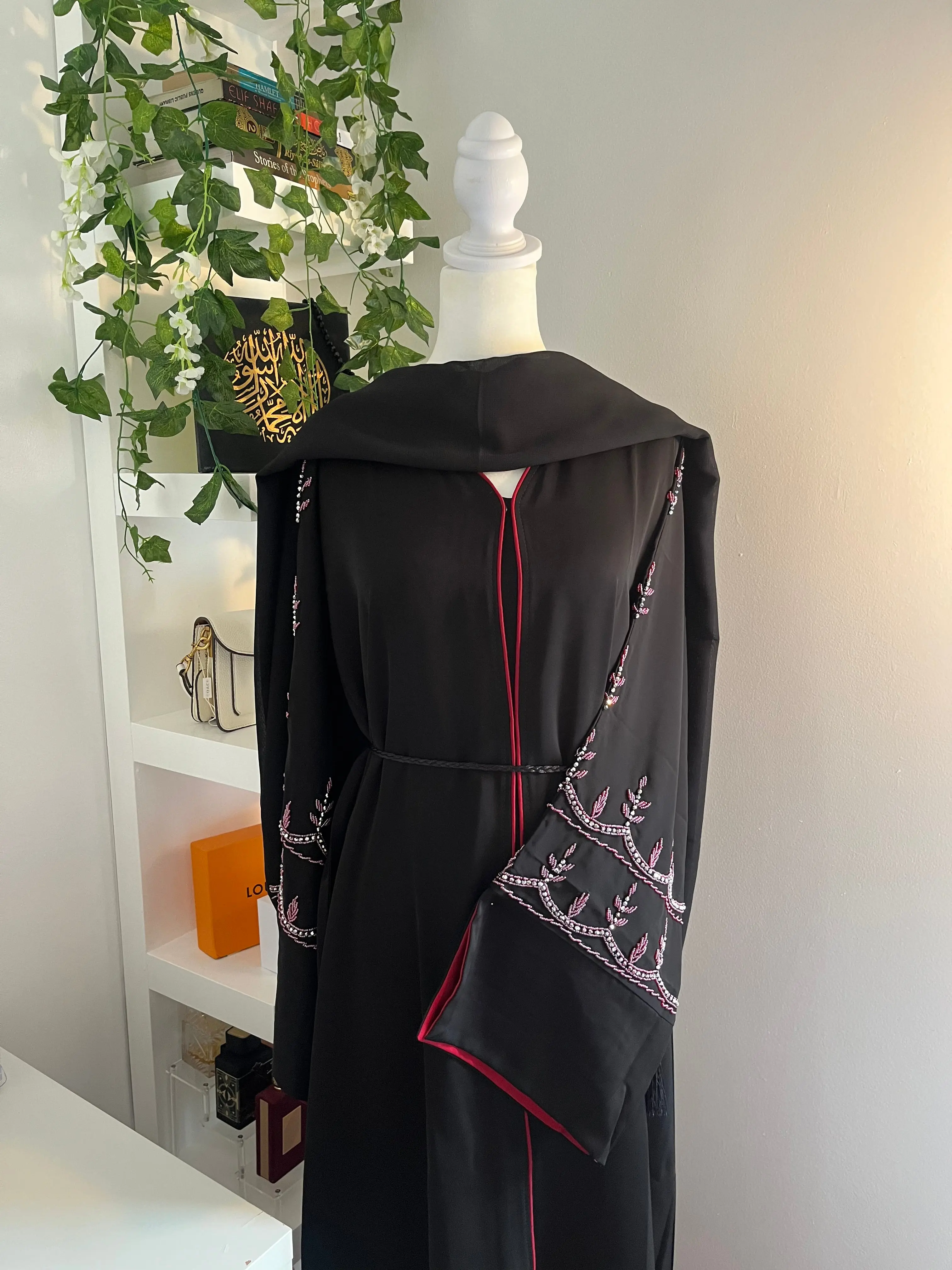 So pretty MaShaAllah! The red stands out beautifully In this abaya and is the perfect complimentary color.