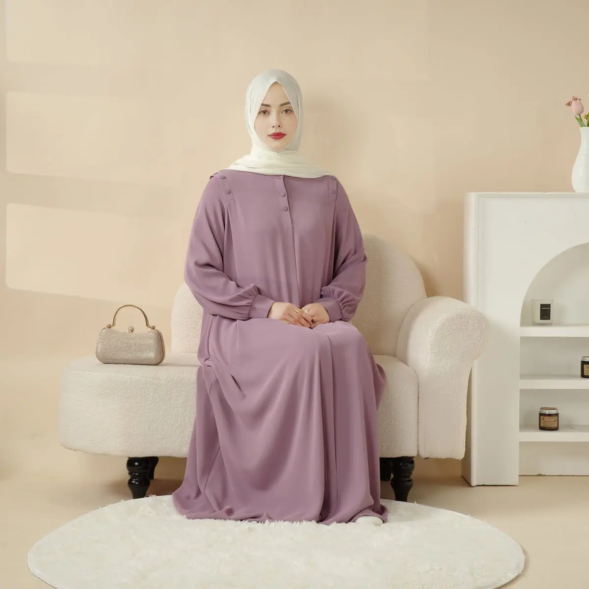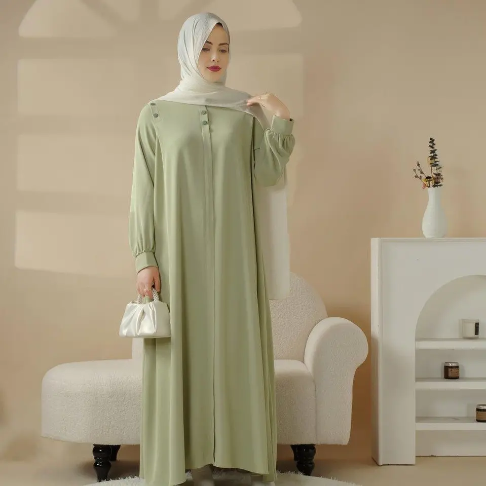 Introducing the Macaron Color Shoulder Button Pullover Abaya, a beautiful blend of simplicity and elegance that celebrates a woman's natural grace. Designed for versatility, this abaya features button details at the shoulder and an adjustable neckline, offering a customizable fit that combines comfort with style. Its soft, high-quality fabric ensures excellent drape, creating a flattering silhouette perfect for any occasion.