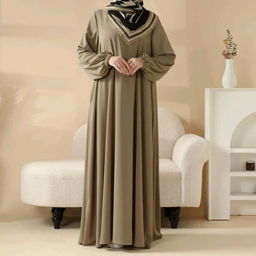 This abaya suits casual outings or modest looks, offering timeless style and all-day comfort in any season.