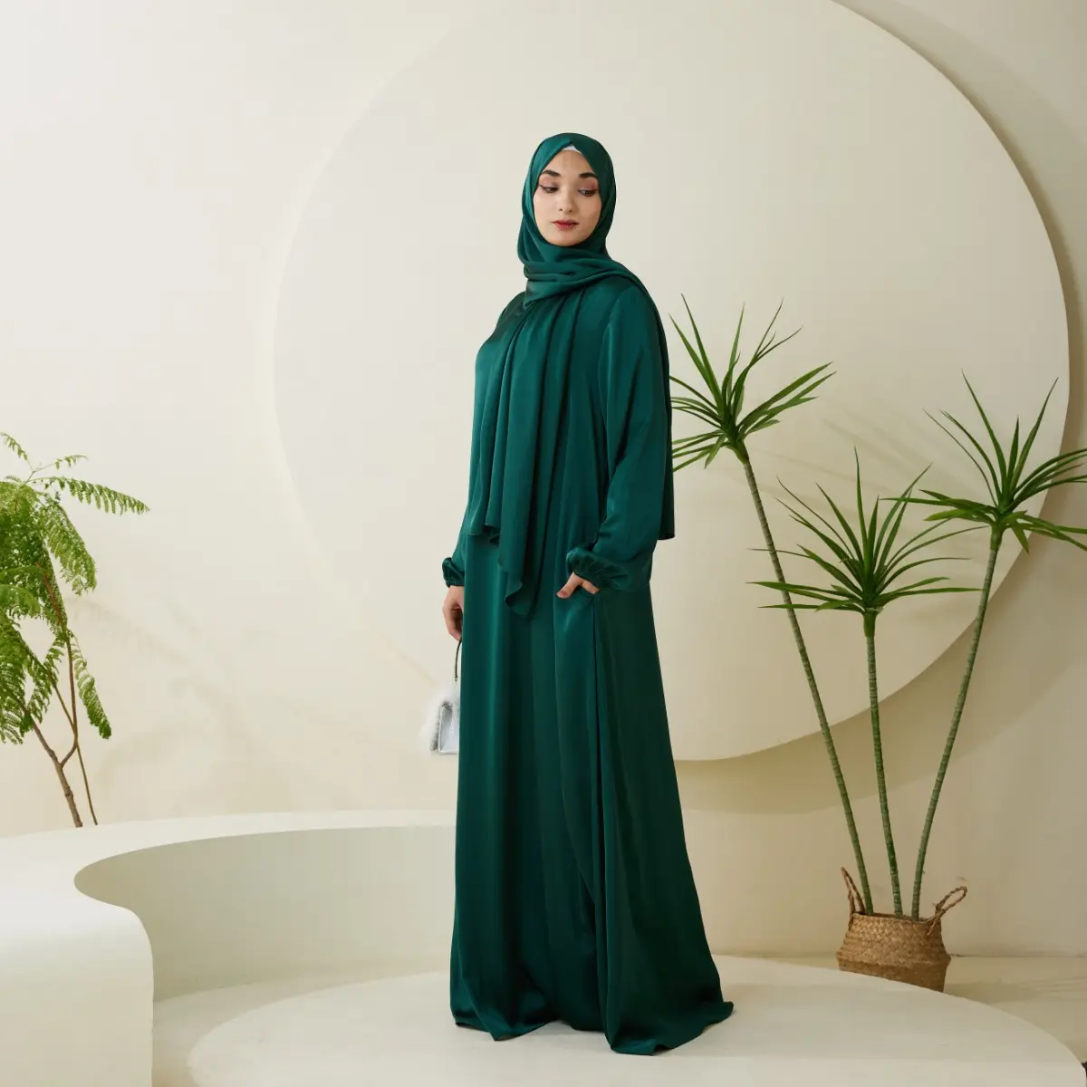 NCA001 AMANI Satin One Piece With Hijab Abaya: Stylish Statement of Elegance