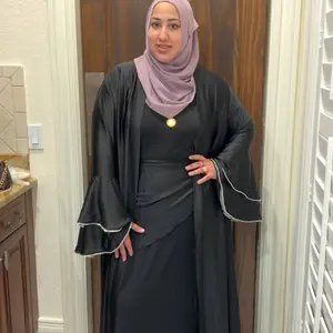 This Abaya Satin Crepe Ruffle Sleeve Women's Dress Set is a chic and elegant traditional dress perfect for various occasions.