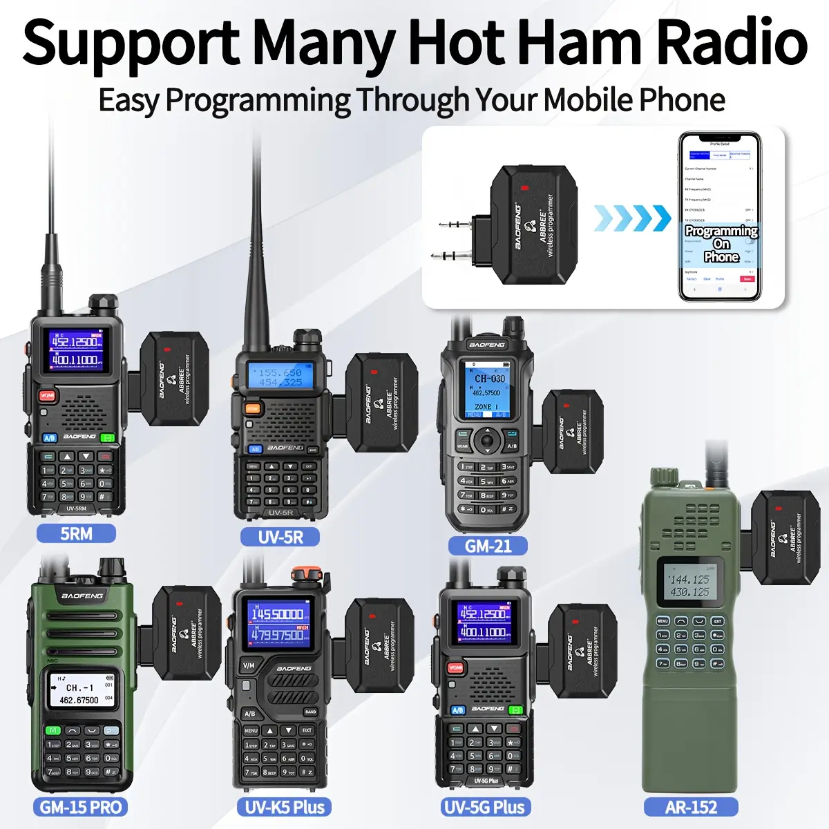 ABBREE Walkie Talkie Programmer, Radio Wireless Phone APP Fast Programming, Replace Programming Cable, Repeater List Import, Suitable for Most Wireless Radios