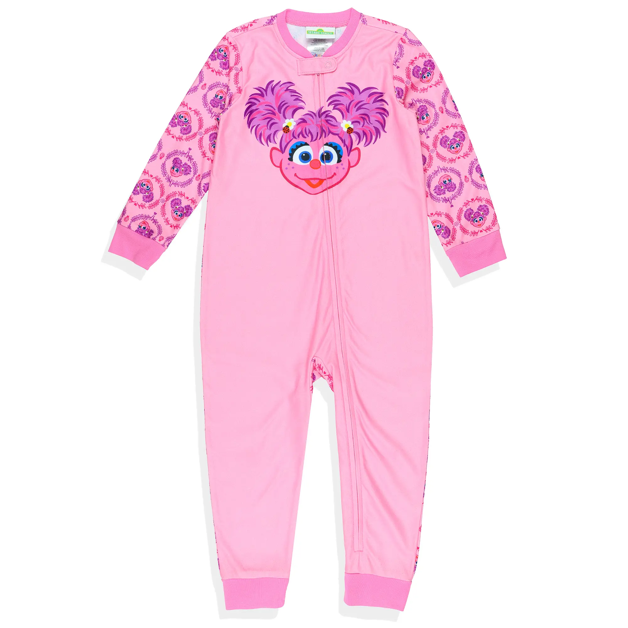 With its easy full-front zipper, machine-washable care instructions, and flame-resistant fabric, this sleeper is as practical for parents as it is fun for kids. The cuffed wrists and ankles provide a secure fit, while the footless design allows more movement and airflow. This union suit offers a reliable, comfortable option for all-night wear. For size reference, our model is 3 feet 6 inches tall and is wearing a size 4T. Whimsical Abby Design: This footless sleeper features a large, friendly Abby Cadabby face on the front for an instantly recognizable look. The back and sleeves are covered in a soft all-over print of Abby surrounded by a circular plant wreath design. The girl in these photos is 3 feet 6 inches tall and is wearing a size 4T. Cozy, Safe Fabric: Made from 100% polyester fleece, this sleeper feels warm and soft against the skin. The material is flame-resistant, offering peace of mind and an added layer of safety for little ones during nighttime wear Convenient Zipper: The full-length zipper down the front makes dressing and undressing easy, even on busy mornings or bedtime routines. Cuffed wrists and ankles provide a secure, stay-in-place fit that helps keep kids comfortable Versatile Union Suit: This footless PJ suit is great for bedtime, movie nights, or staying warm on chilly days Easy Care: These union suit pajamas are machine washable in cold water on a gentle cycle. Tumble dry on low for quick, hassle-free cleaning and to keep the fabric soft after every wash