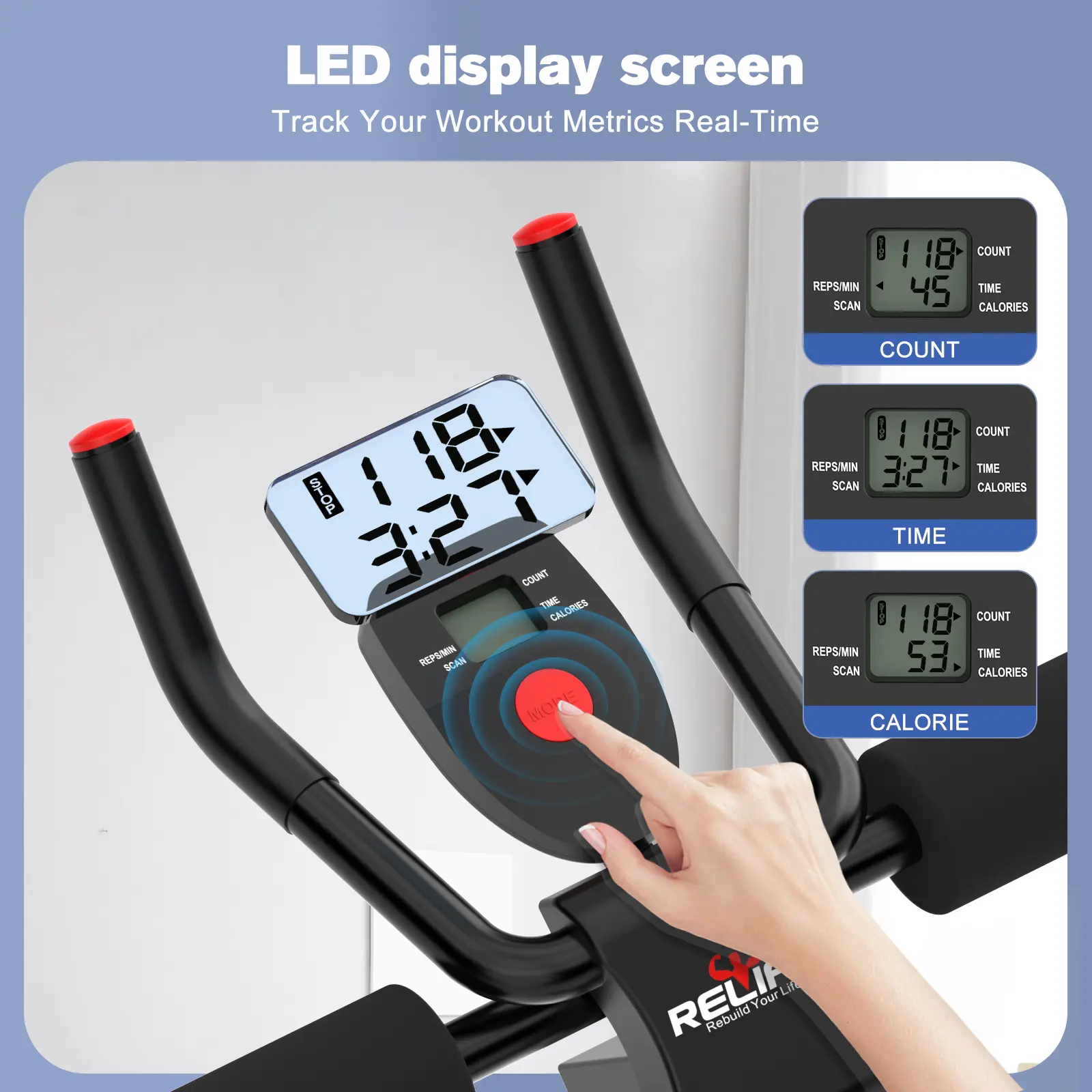 ·Auto-Tracking LCD Display: Monitors workout time, reps, and calories burned—track progress in real time to set goals.