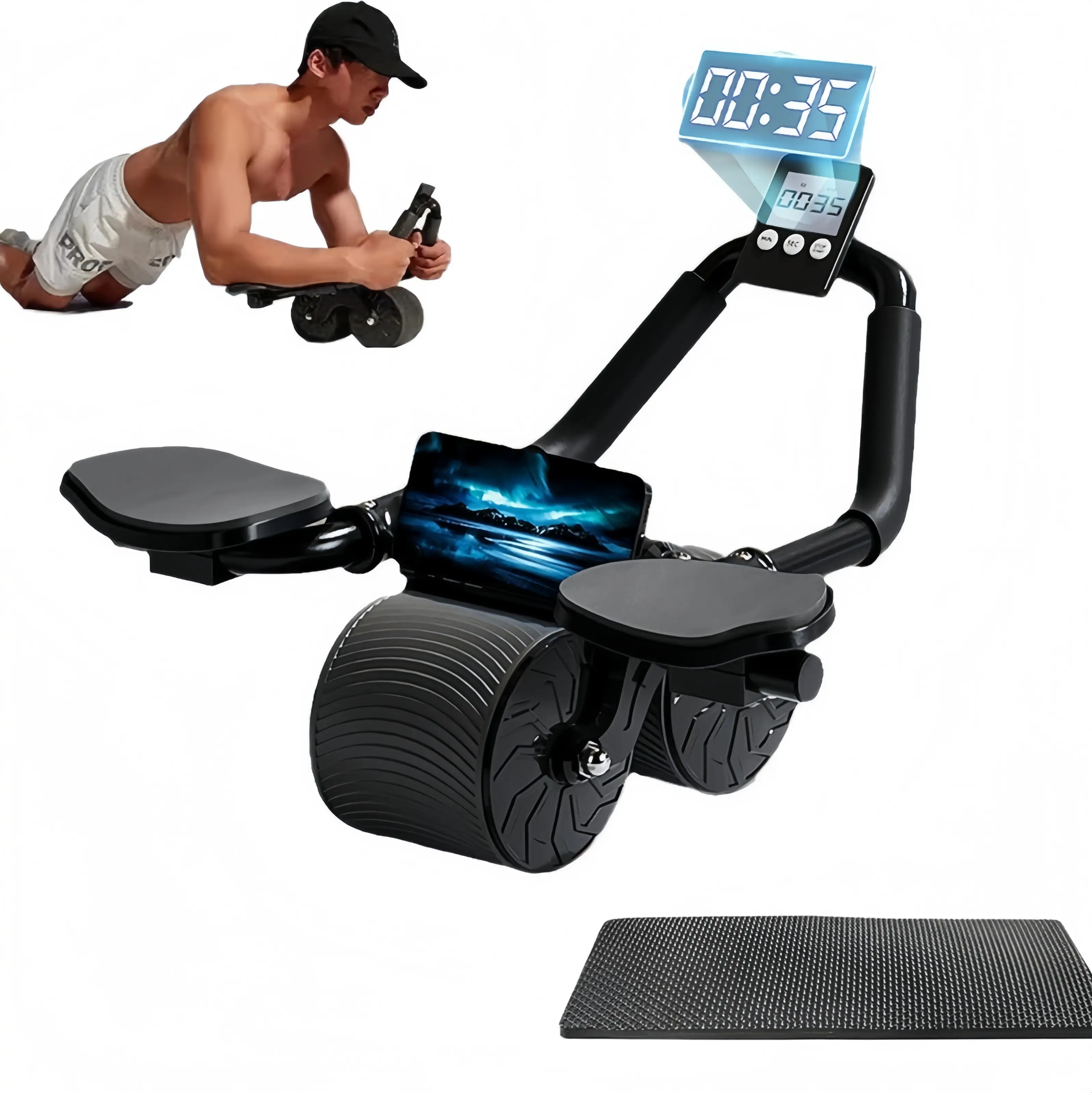 Abdominal wheel, factory direct sale, suitable for assisting core muscle training, automatically rebounds, equipped with a timer, ideal for home workouts, best choice for fitness enthusiasts