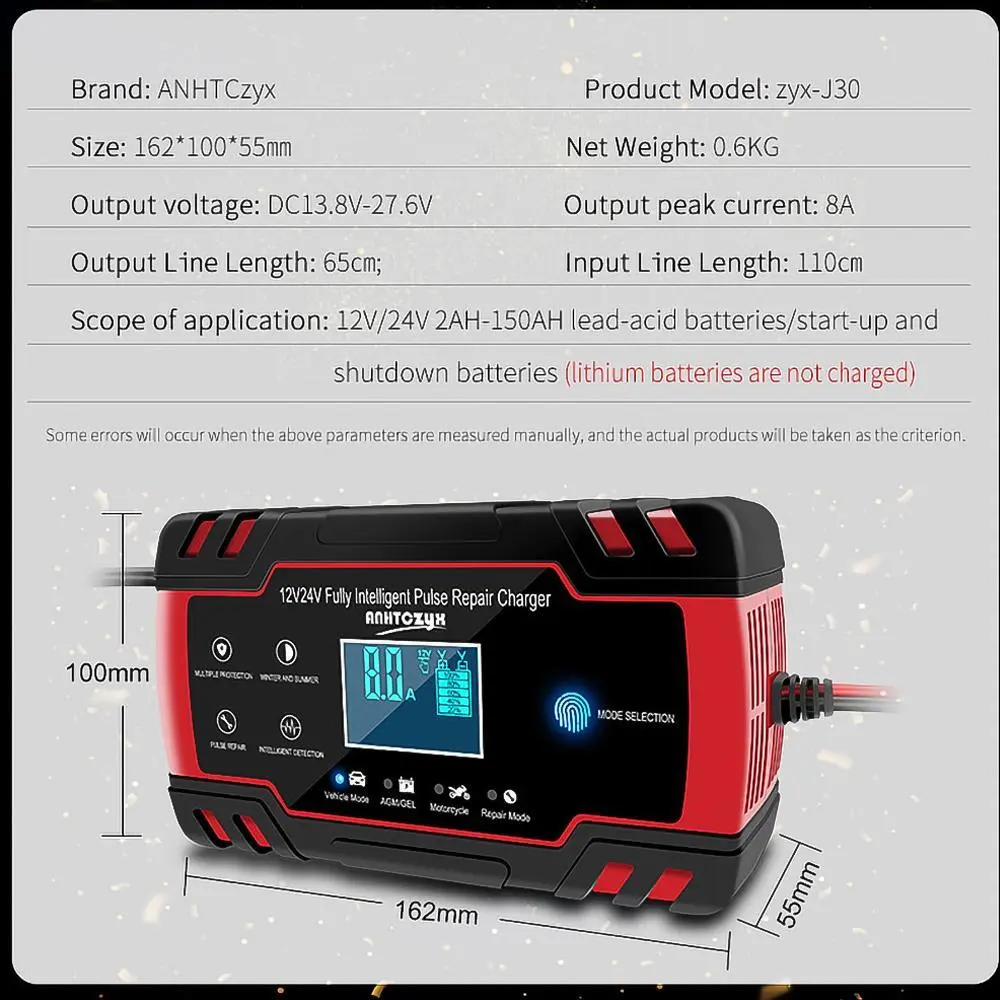 ·Types of batteries: Most types of lead acid batteries including Calcium, GEL and AGM, Wet,EFB, etc..