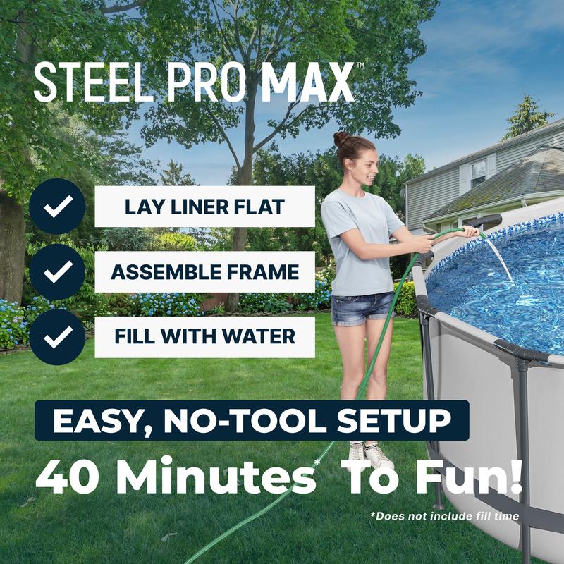 It sounds like the Bestway Steel Pro MAX 15 Foot by 48 Inches Round Above Ground Swimming Pool is a fantastic option for anyone looking to enjoy a backyard pool. Here's a quick overview of the key features based on your description: