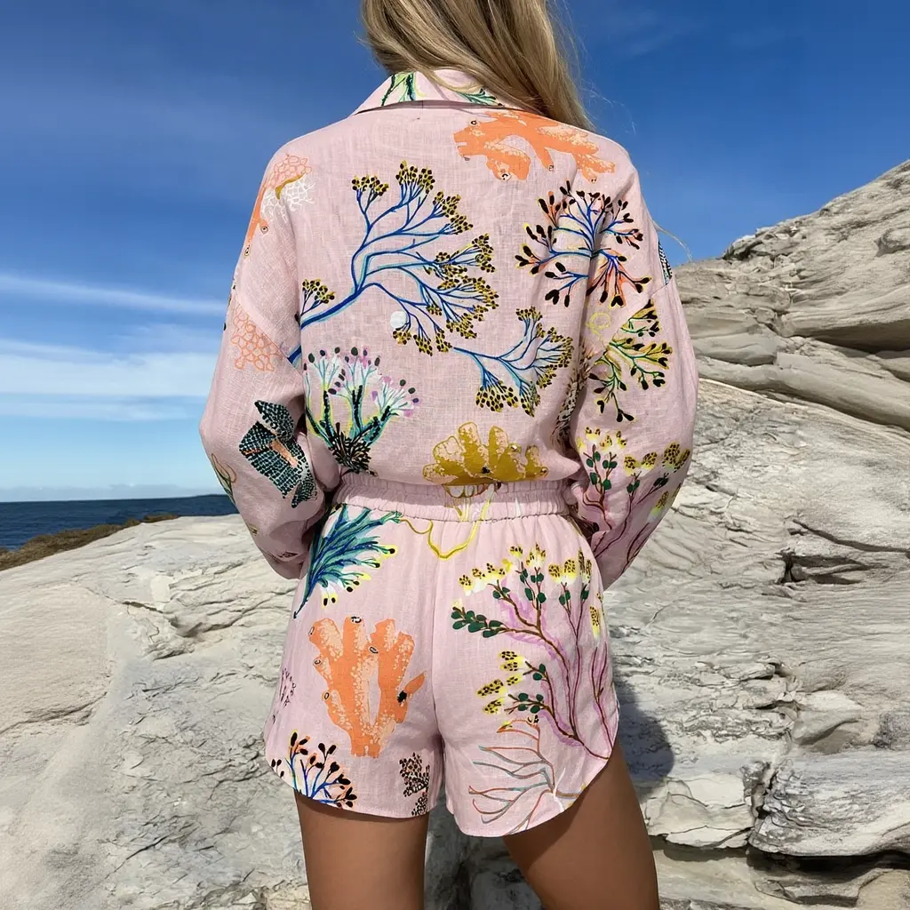 Enjoy this versatile and stylish two-piece set for your beach vacation or any casual outing!