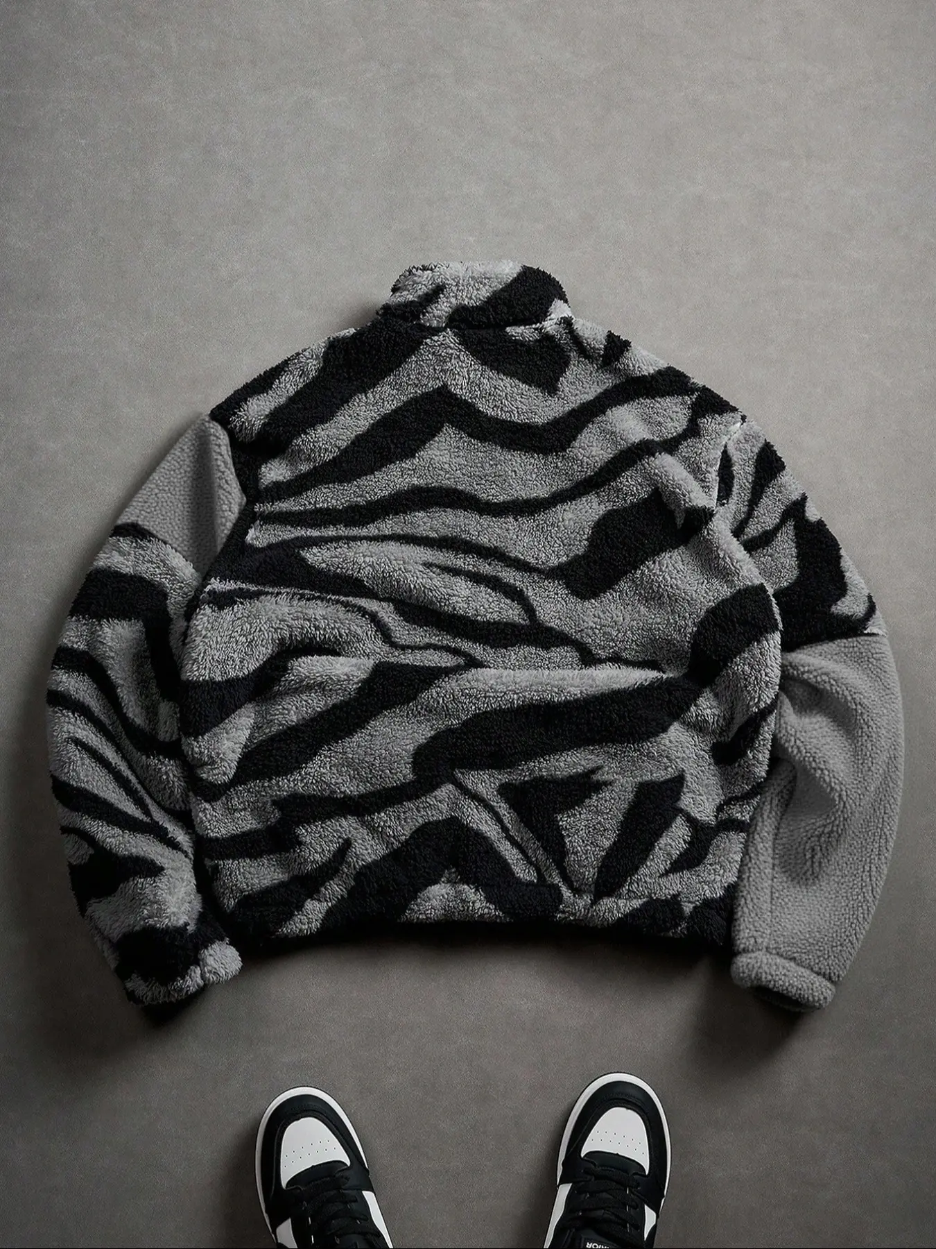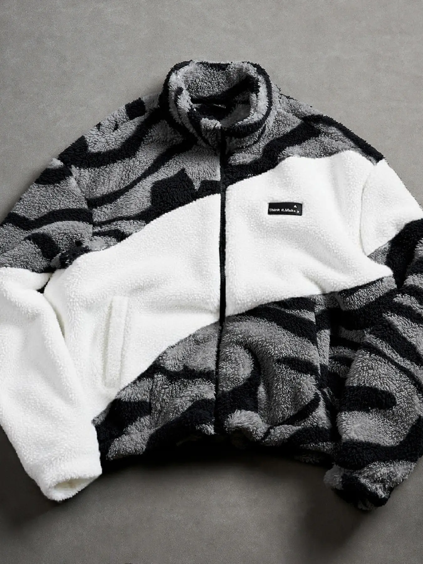 Abstract Pattern Fleece Zip-Up Jacket, Cozy Streetwear, Trendy Tiktok Must-Have, Stylish Warm Coat for Daily Wear #jackets #fauxfurhoodie #unisexsweatsuits #menshoodiejacket #flanneljacket #pufferjacketgoals #newyearsootd #aritziajacket #fleecelinedjacket #quarterziphoodie