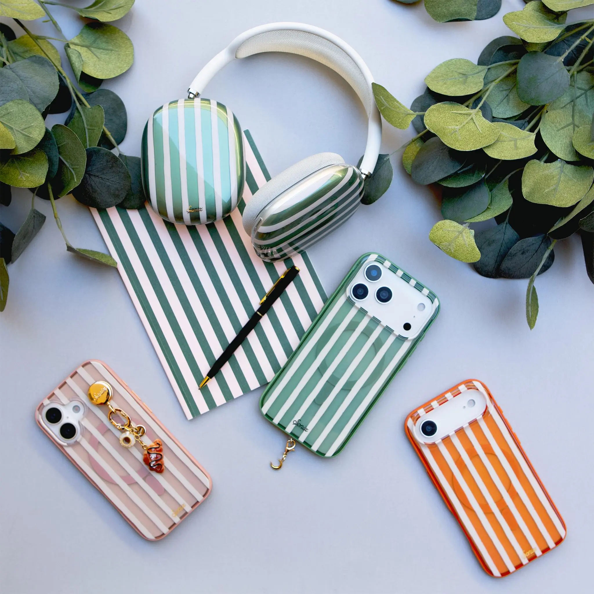 Stripes are a classic wardrobe staple that are having a serious moment this season. The Abstract Stripe series of iPhone cases incorporates this timeless and bold print with fun seasonal colors that will elevate your daily carry and provide pretty protection for your new iPhone. Each Abstract Stripe MagSafe® compatible iPhone case features a matching colored bumper and strong built in magnets to support MagSafe charging and accessories. Available in 3 bold colors: Sage, Nude, and Pumpkin.