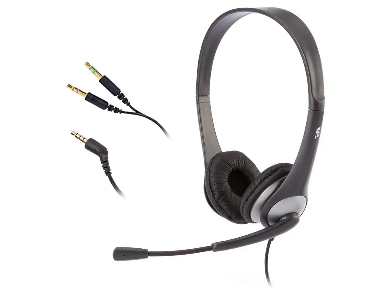 ·Slick, comfortable, and awesome quality the AC-204 analog stereo headset is a great choice for anyone doing VoIP and gaming. Bring your ears to attention with the AC-204s 30mm dynamic drivers. The adjustable, over the head design fits comfortably on any head size, and the flexible, noise-cancelling boom mics 180-degree rotation gets the job done, no matter your preference. The AC-204 utilizes a single 3.5mm plug, compatible with Android™, Apple®, Chromebook™, tablets, and most desktop computers. With the included Y-adapter the AC-204 is backwards compatible with all other hardware. A true universal solution.FEATURES: Unidirectional noise-canceling microphoneLeatherette ear padsAmbidextrous boom arm (swings for left or right side use)Adjustable headbandPC Y-adapter included