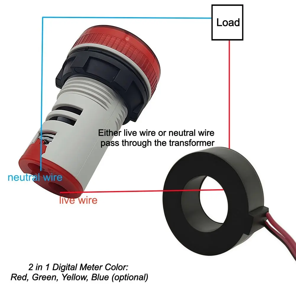 Small size and easy to carry, simply put a load through the current transformer. (note: either live wire or neutral wire pass through the transformer)