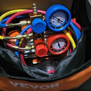 • Premium Manifold Gauge Set: The manifold gauge is designed to measure pressure in refrigeration equipment and ensure accurate readings. The rubber-wrapped design is drop-proof and more durable. It contains common refrigerant scales for easy use in a variety of refrigeration equipment.