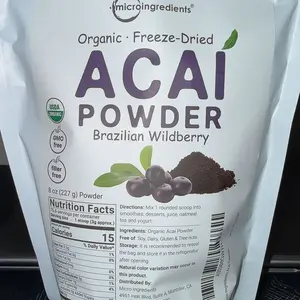 ·Micro Ingredients fresh organic acai berry powder. A superfood berry powder derived from raw, organic acai berries that are traditionally grown in the Brazilian Amazon rainforest. We use a freeze-drying method that uses berry pulp without any seeds, leaving it to retain more nutritional value and higher active components overall.