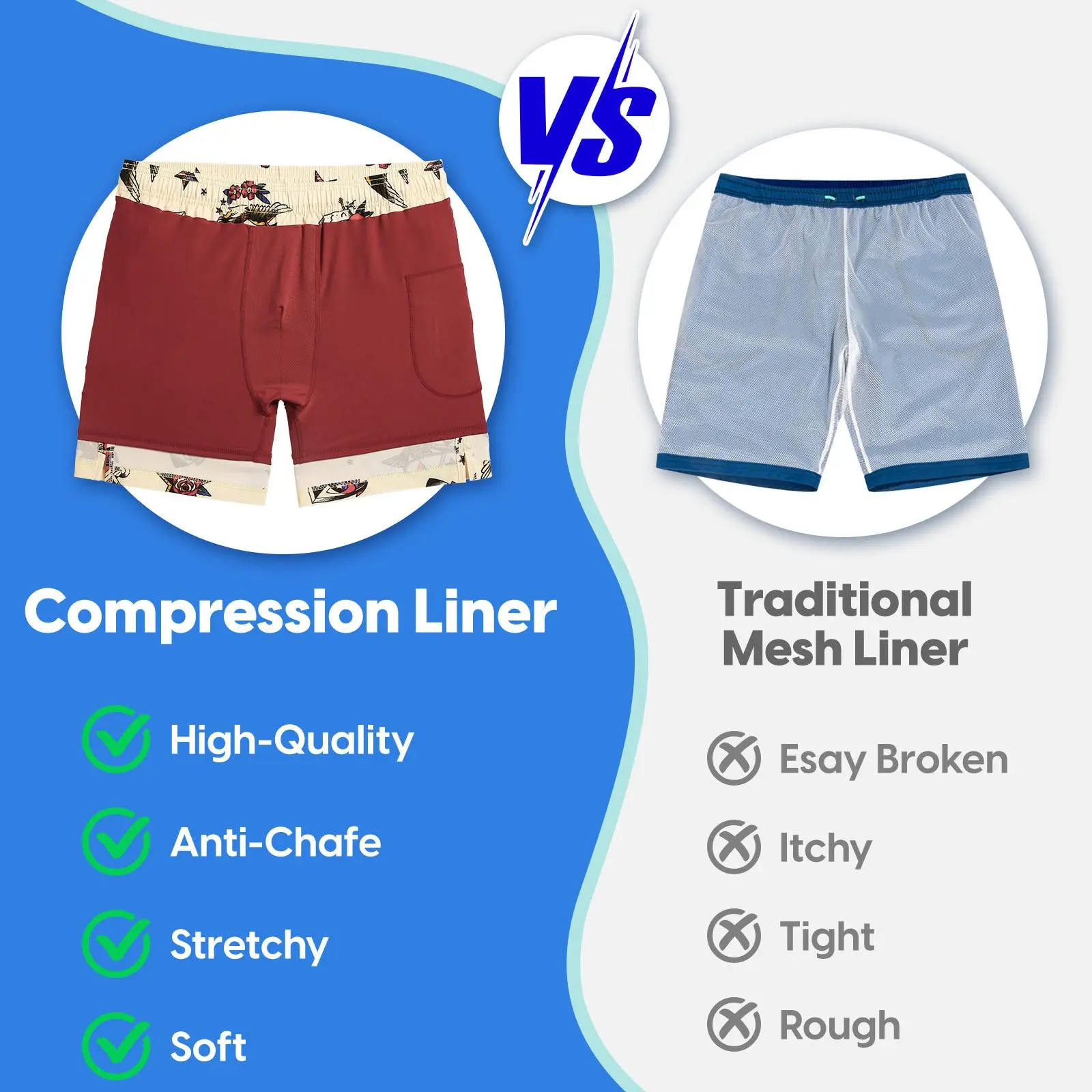 ·Liner: Soft & Stretch mesh liner.