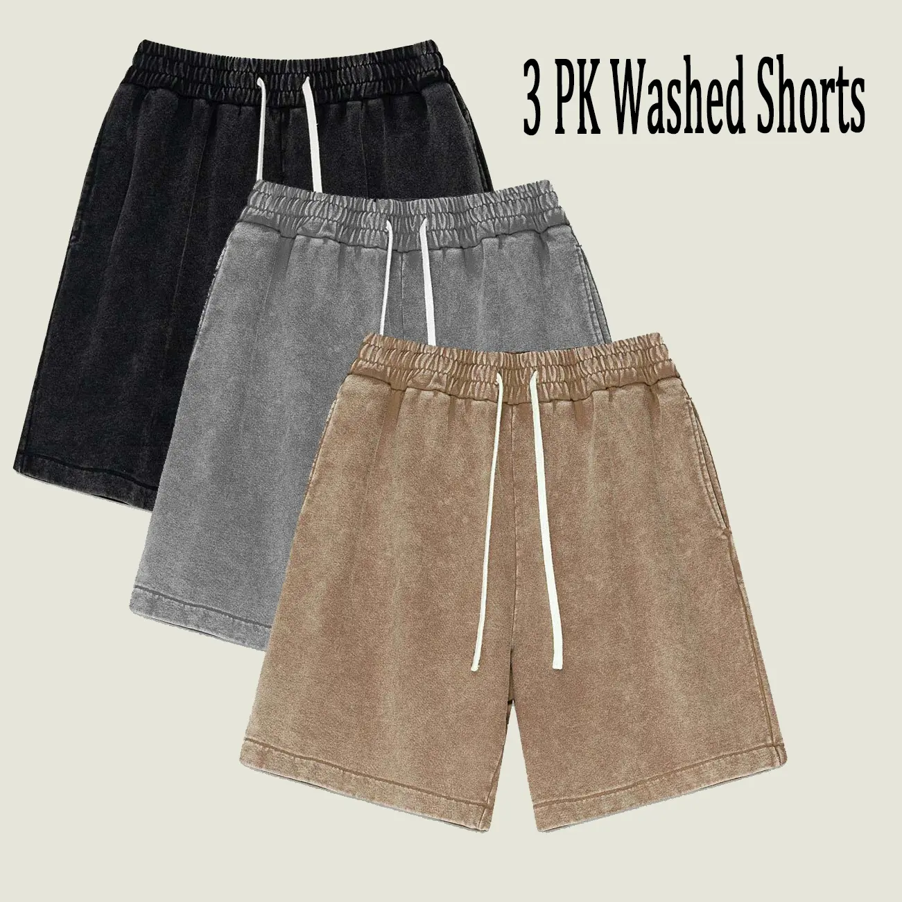 black + gray + apricot shorts