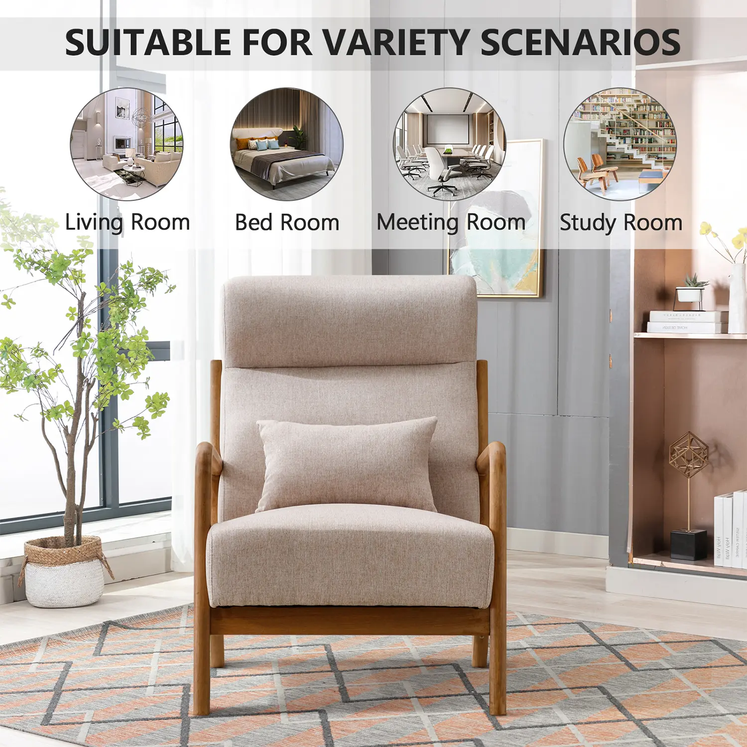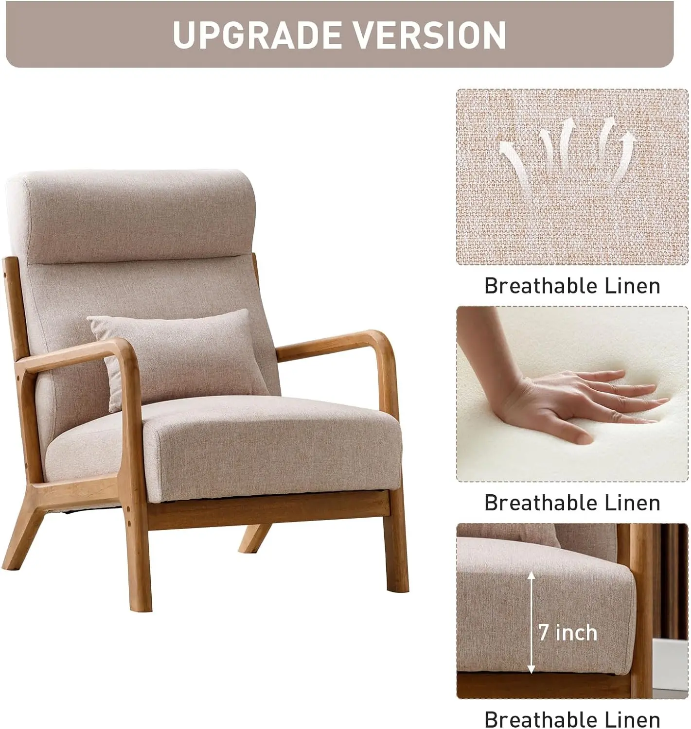 ·Durable Construction: Crafted with a sturdy solid wood frame, this armchair offers durability and stability, ensuring years of reliable use and enjoyment.