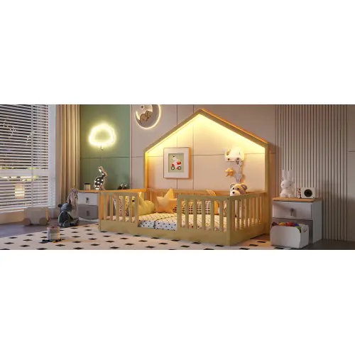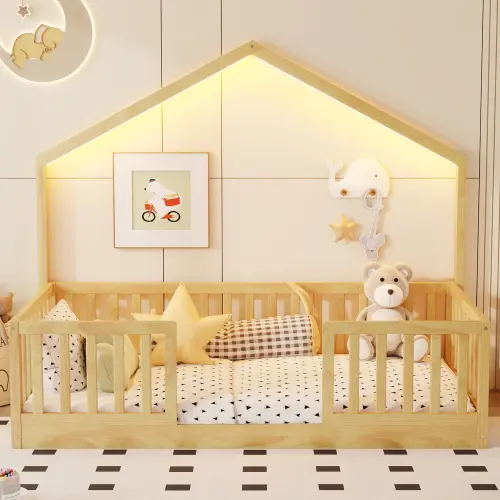 This full size floor bed includes LED strip lights, creating a cozy, dreamy atmosphere for bedtime. The light is in one color only. Perfect for creating a soothing environment for your little ones. 🌟