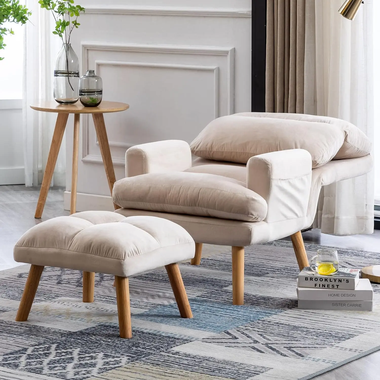 5. [Dealsforyoudays]Ebello 26" Wide Modern Accent Chair with Seat Cushion, Soft Fabric Armchair, Adjustable Backrest and Side Pockets, Comfortable Lounge Chair for Living Room, Bedroom, Apartment, Office, Beige