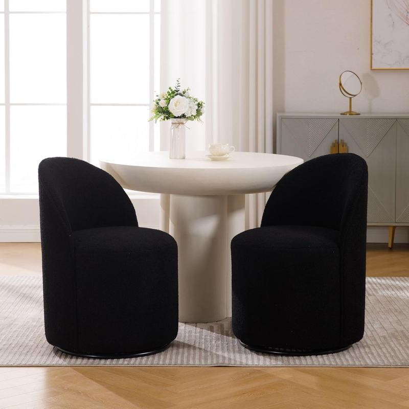 CHAIRUS  360° Swivel Accent Chair, Modern Dining Chair with Round Barrel Back for Dining Room, 1 PC, Black SherpaCHAIRUS  360° Swivel Accent Chair, Modern Dining Chair with Round Barrel Back for Dining Room, 1 PC, Black Sherpa