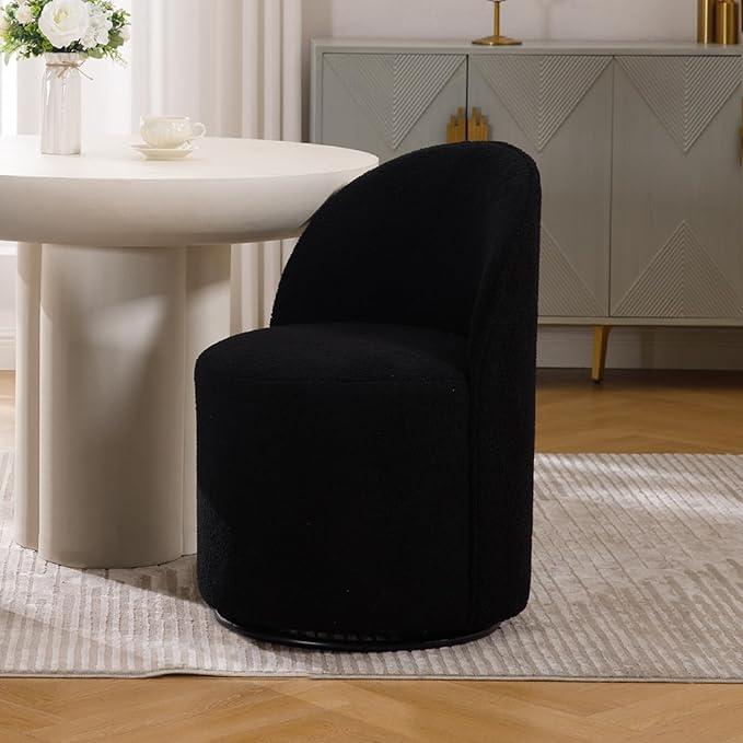 5. CHAIRUS 360° Swivel Accent Chair, Modern Dining Chair with Round Barrel Back for Dining Room, 1 PC, Black Sherpa