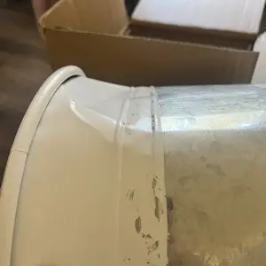 They came dented and I couldn’t event get the smaller one out that was stored inside the larger can. The top was plywood.