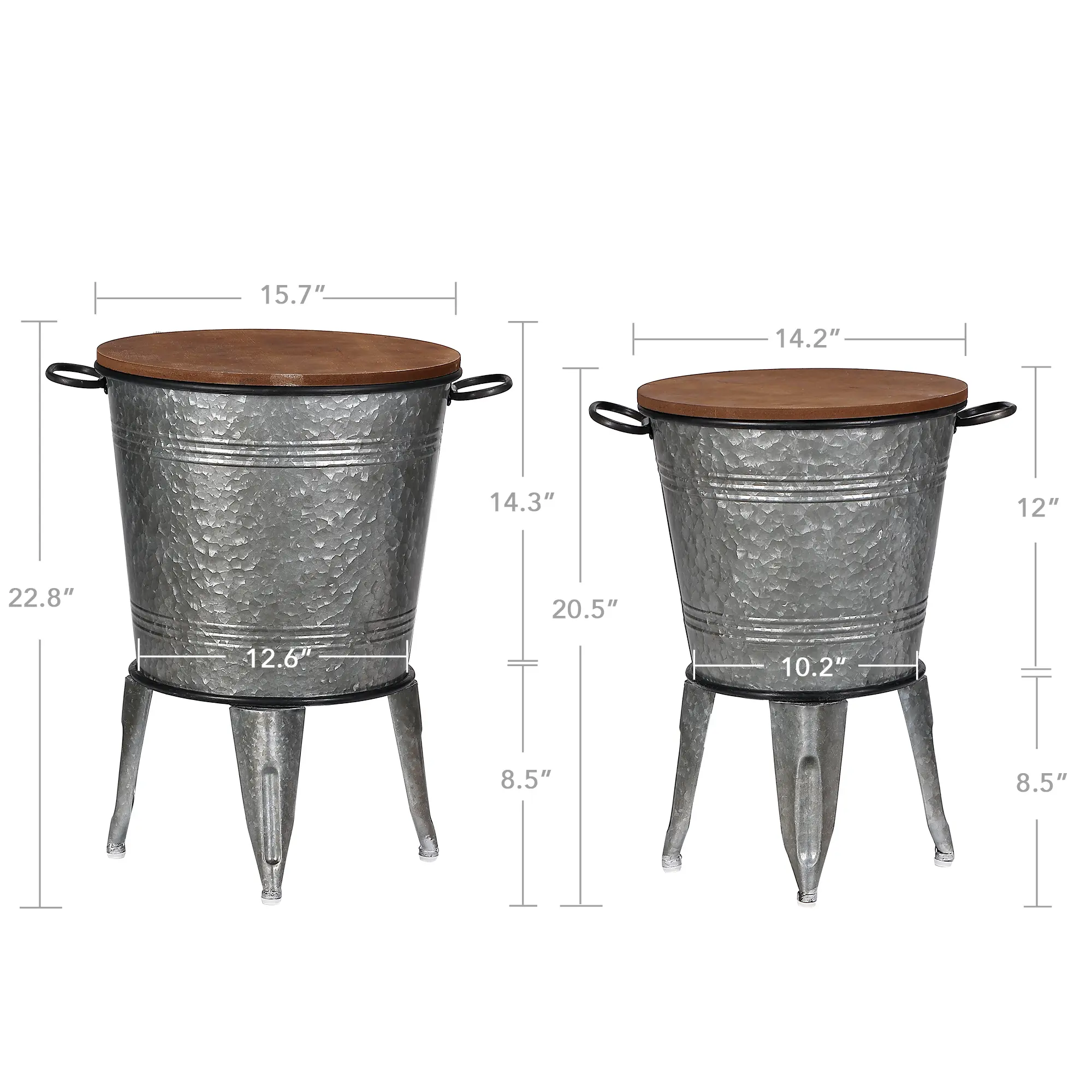 These tables are beautiful. Actually quality. Exactly as pictured. I am actually using the large one to hold my dogs food. It holds a 40 lb. Bag with no problem. I’m using the smaller one to hold the leashes and toys. Love them.