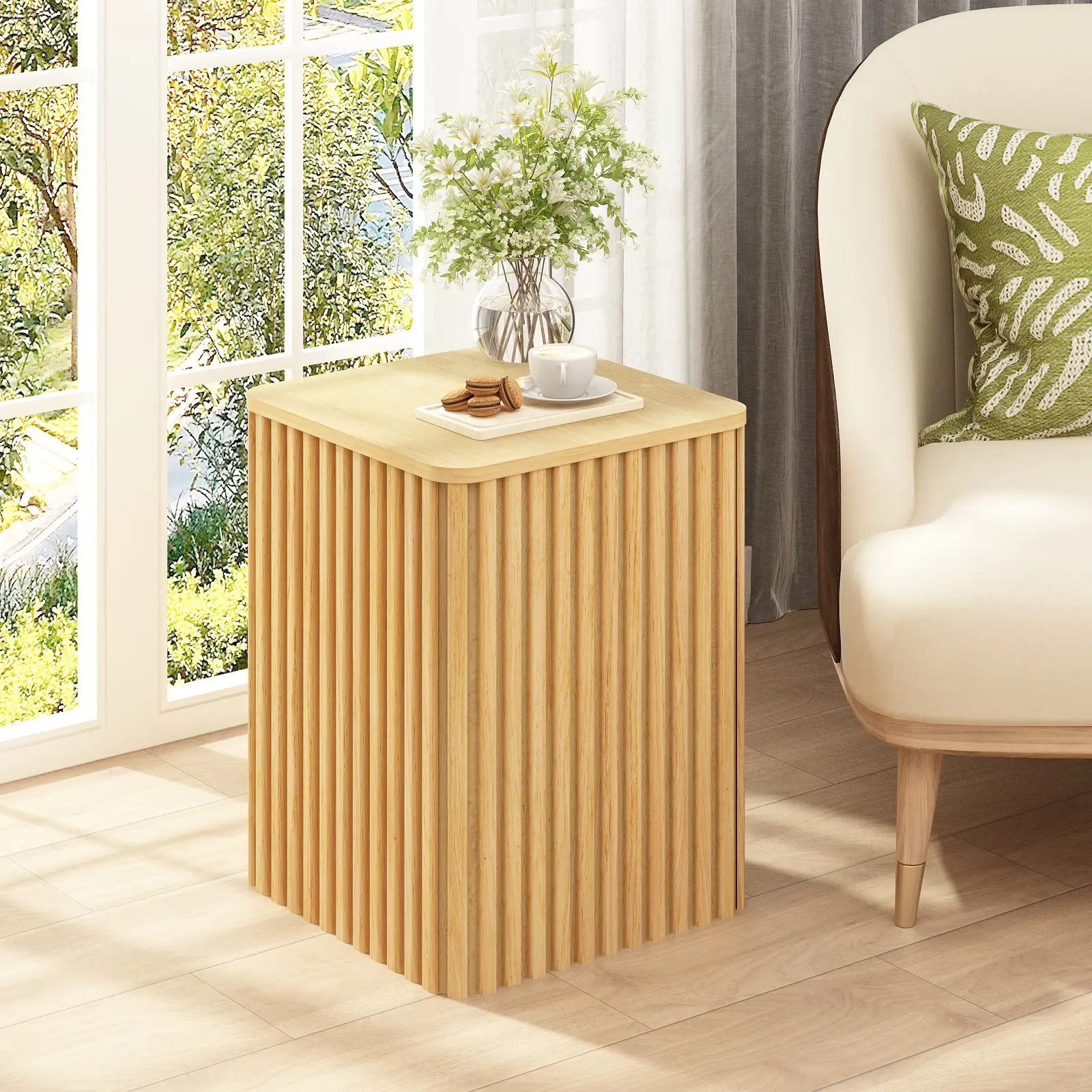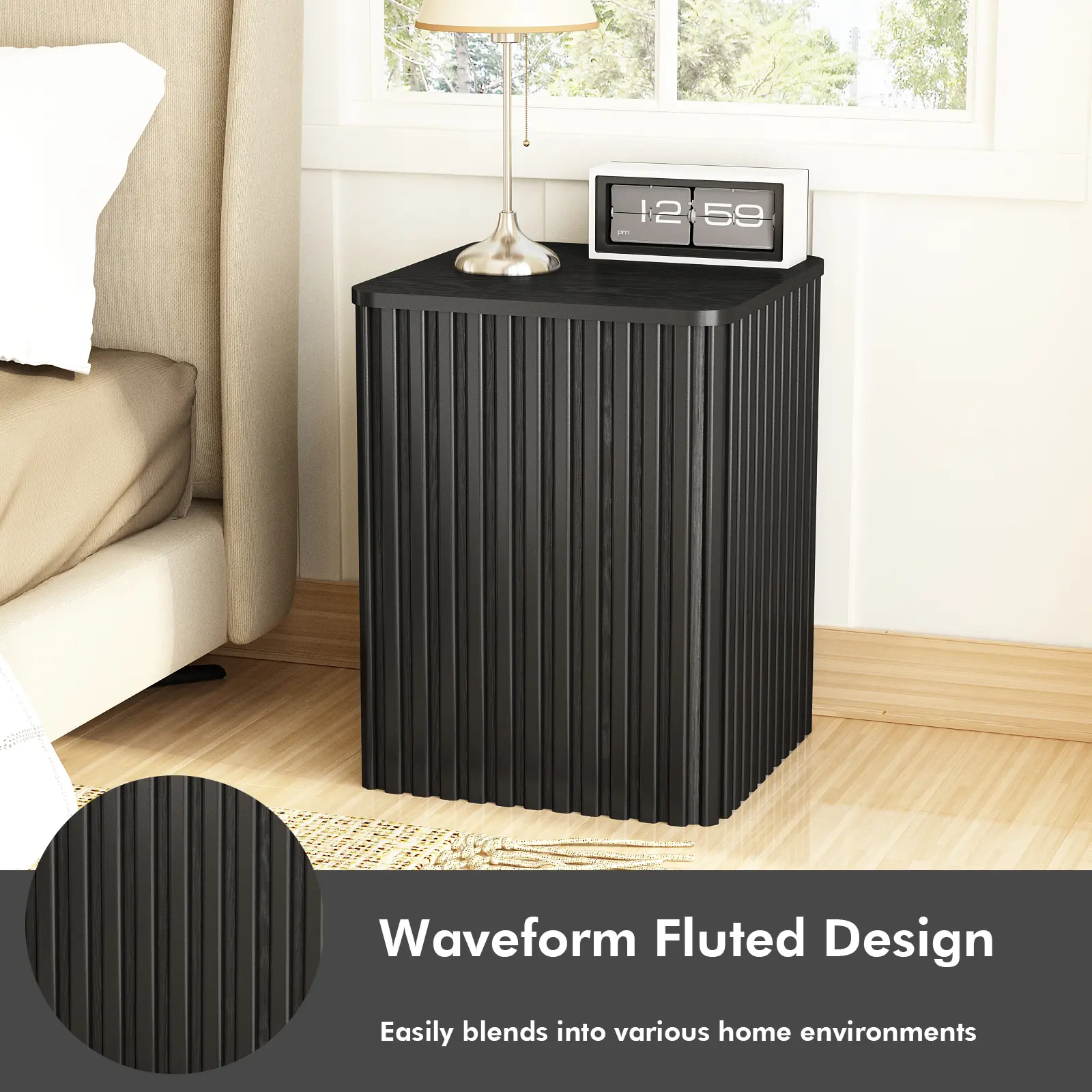 Elegant Fluted Aesthetic:This contemporary side table showcases a remarkable fluted design in a wavy pattern, artfully combining the charm of Art Deco and Mid-Century Modern aesthetics. The sleek gold-toned metal handle further accentuates its refined allure, making it a statement piece in any room.
