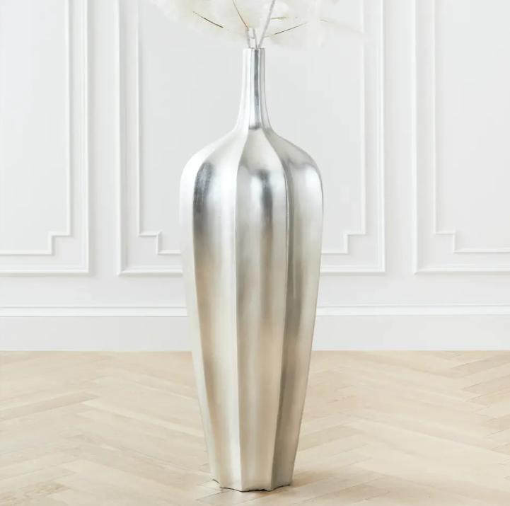 Unboxing my newest timeless and elegant piece from @Z Gallerie , the Accolade Vase, and it's currently on sale. It's available in silver and gold.  #zgcolab #floorvase #timelessdecor ##elegantdecor #glamdecor #livingroomdecor #silverdecor #smallspacebigstyle