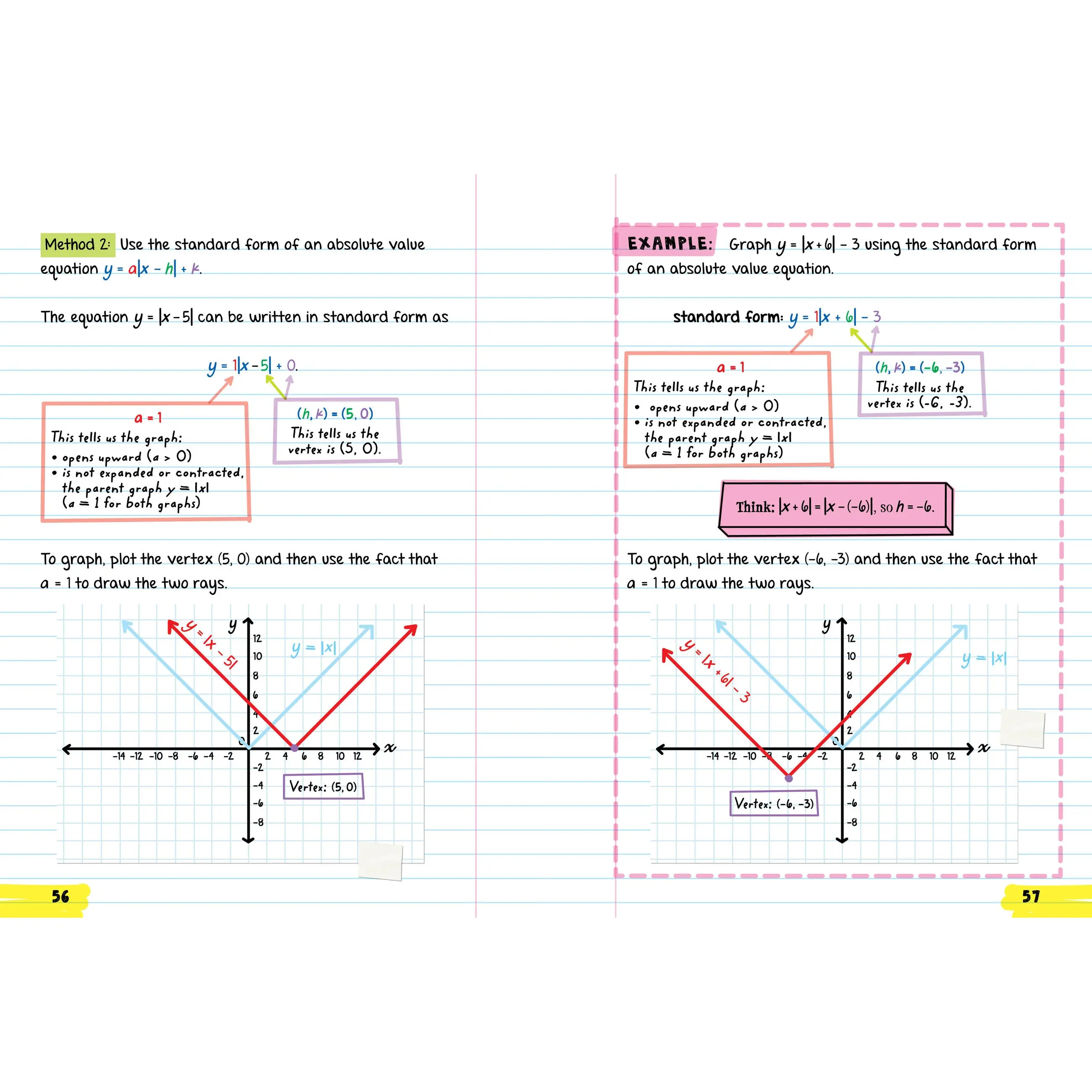 Filled with helpful tips, definitions, and side bars, all written in accessible student-friendly language, readers can use this study guide to supplement classroom instruction, for review, homework help, test prep, and to make the most challenging Algebra 2 concepts make sense. Starting with a review of foundational Algebra 1 skills, this book covers everything from solving quadratic equations, to graphing functions, to solving triangles with trigonometry, all in a clear, accessible and easy-to-understand way, with step-by-step example problems. It’s like being tutored by the smartest kid in class! (And it’s written, vetted, and approved by the experts— high school Algebra 2 teachers.) All core concepts are covered in print, and additional concepts are available in bonus chapters for free online.