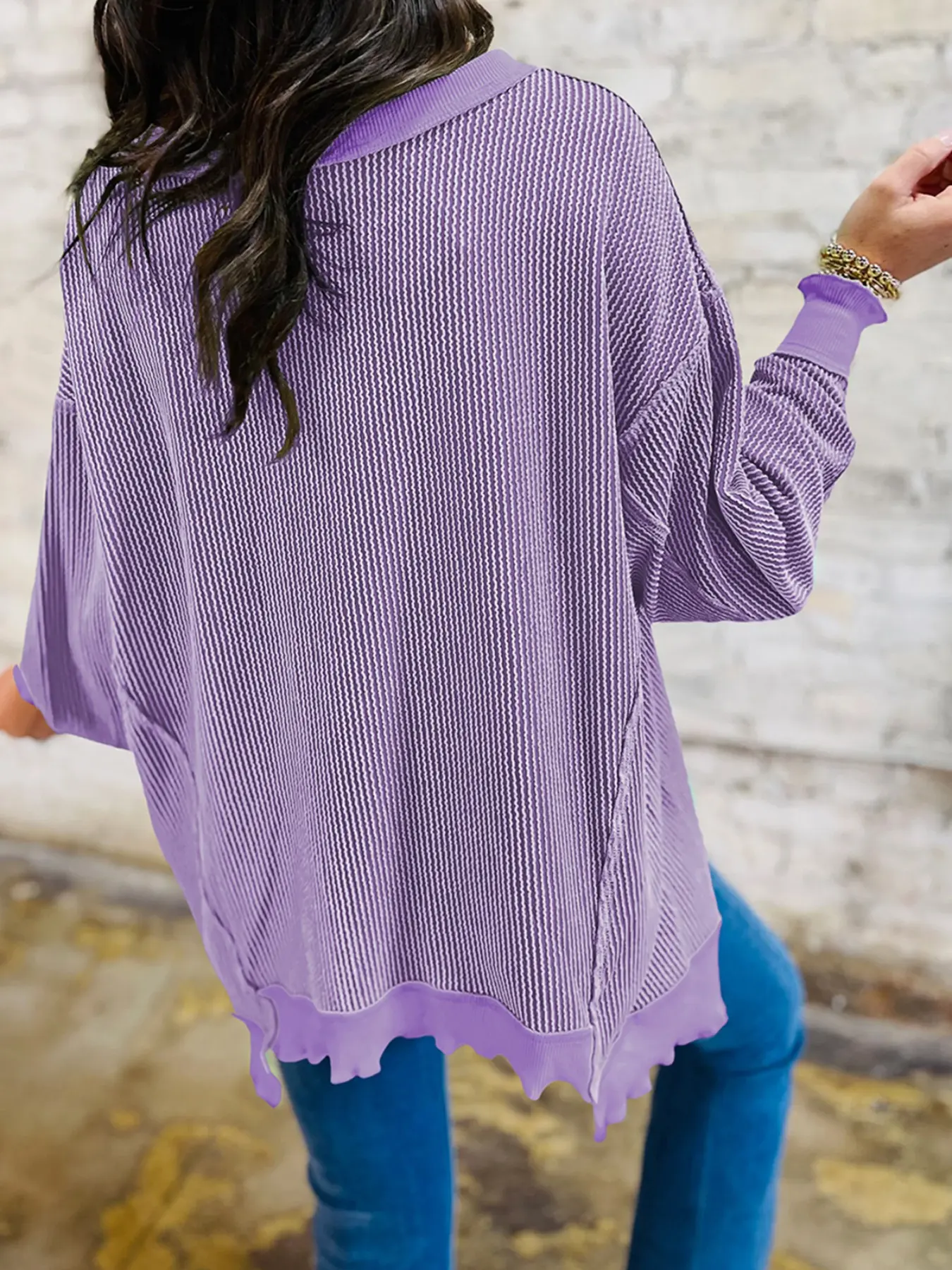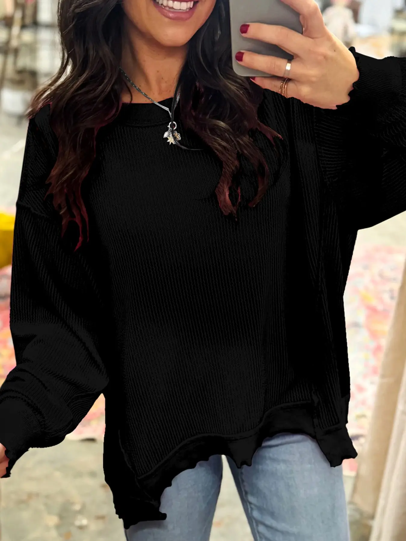 Love this oversized top. Inside is so soft and the raw edges look so trendy