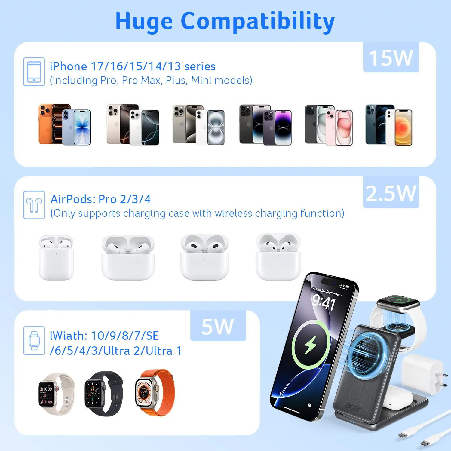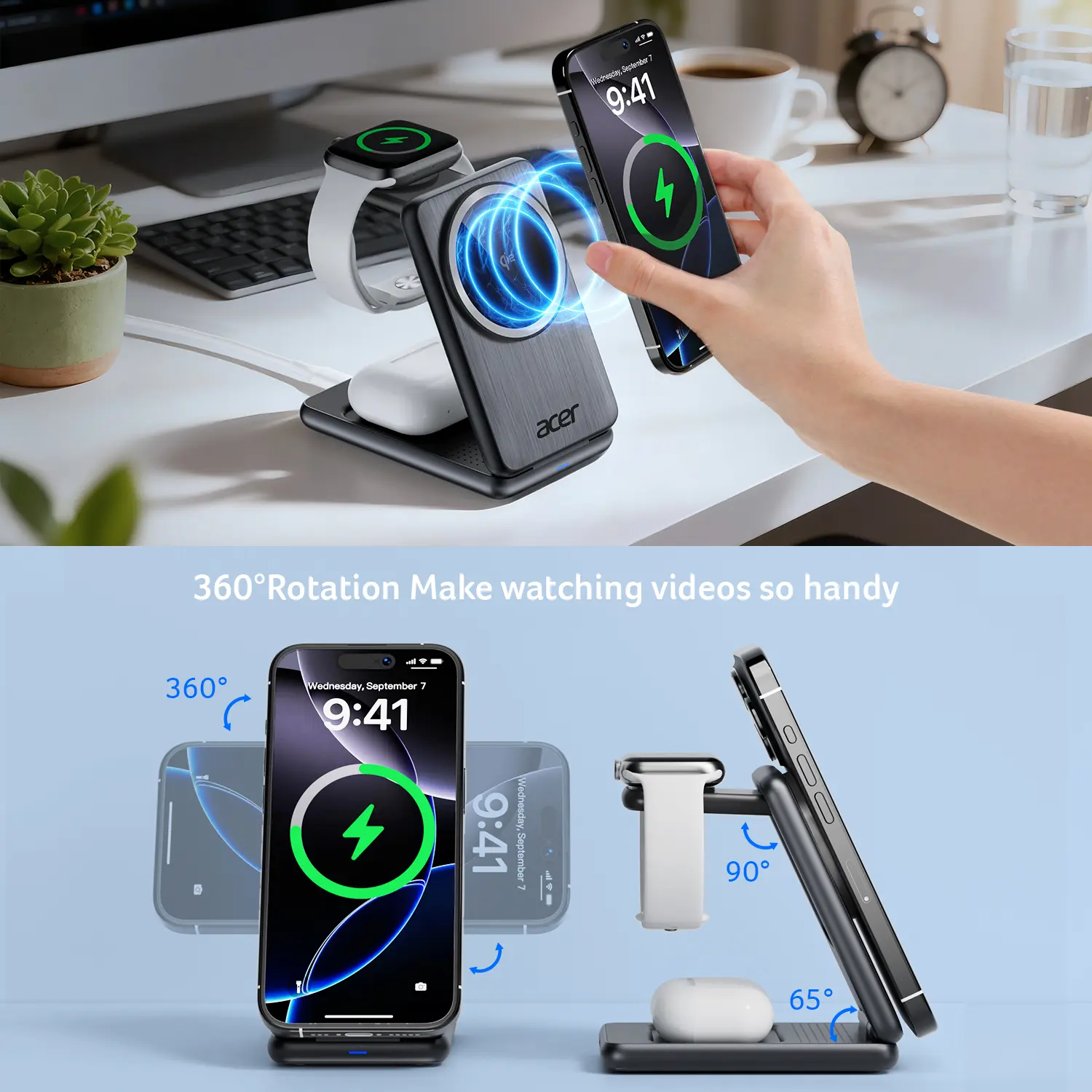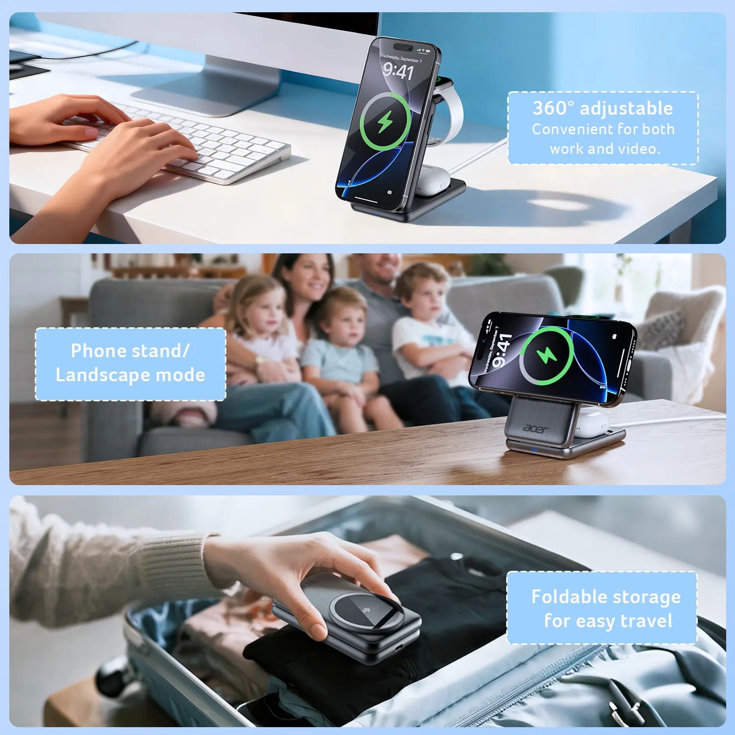 Love the Acer 3 in 1 wireless charger station. The fact that I can take it everywhere, compact and fast charging has been a game changer for me. Huge thumbs up!!