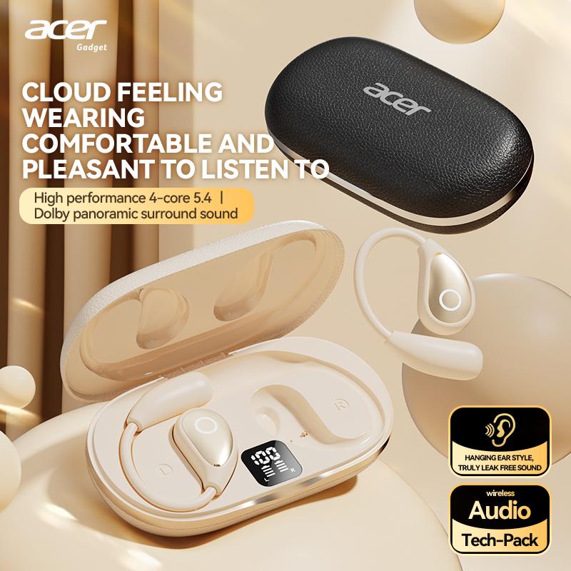 Ever wish your earbuds could keep up with your busy day without discomfort or sound leaks? Meet the Acer OHR515 Wireless Earbuds, designed with an open-ear, air hook style that stays comfy and secure during workouts or long listening sessions. Enjoy rich, immersive Dolby panoramic surround sound powered by a dual drive graphene diaphragm and ACS sound algorithm—perfect for music lovers and podcast fans alike. These earbuds boast an ultra-long battery life, giving you 6 hours on a single charge and a total of 20 hours with the included charging case, which charges quickly via Type-C. Stay informed with the handy real-time LED battery display, so you never run out of juice unexpectedly. Plus, the intelligent touch controls make managing your music and calls effortless. The sleek leather texture and electroplated metal frame add a touch of luxury to your everyday audio gear. Compatible with phones, tablets, and computers, these earbuds are your versatile audio companion. Inside the box, you’ll find the earbuds, a USB Type-C charging cable, and a user guide to get you started. Ready to upgrade your sound experience? Grab your Acer OHR515 earbuds and enjoy premium, leak-free audio wherever life takes you!