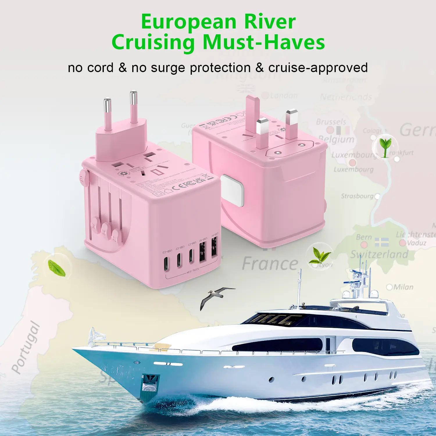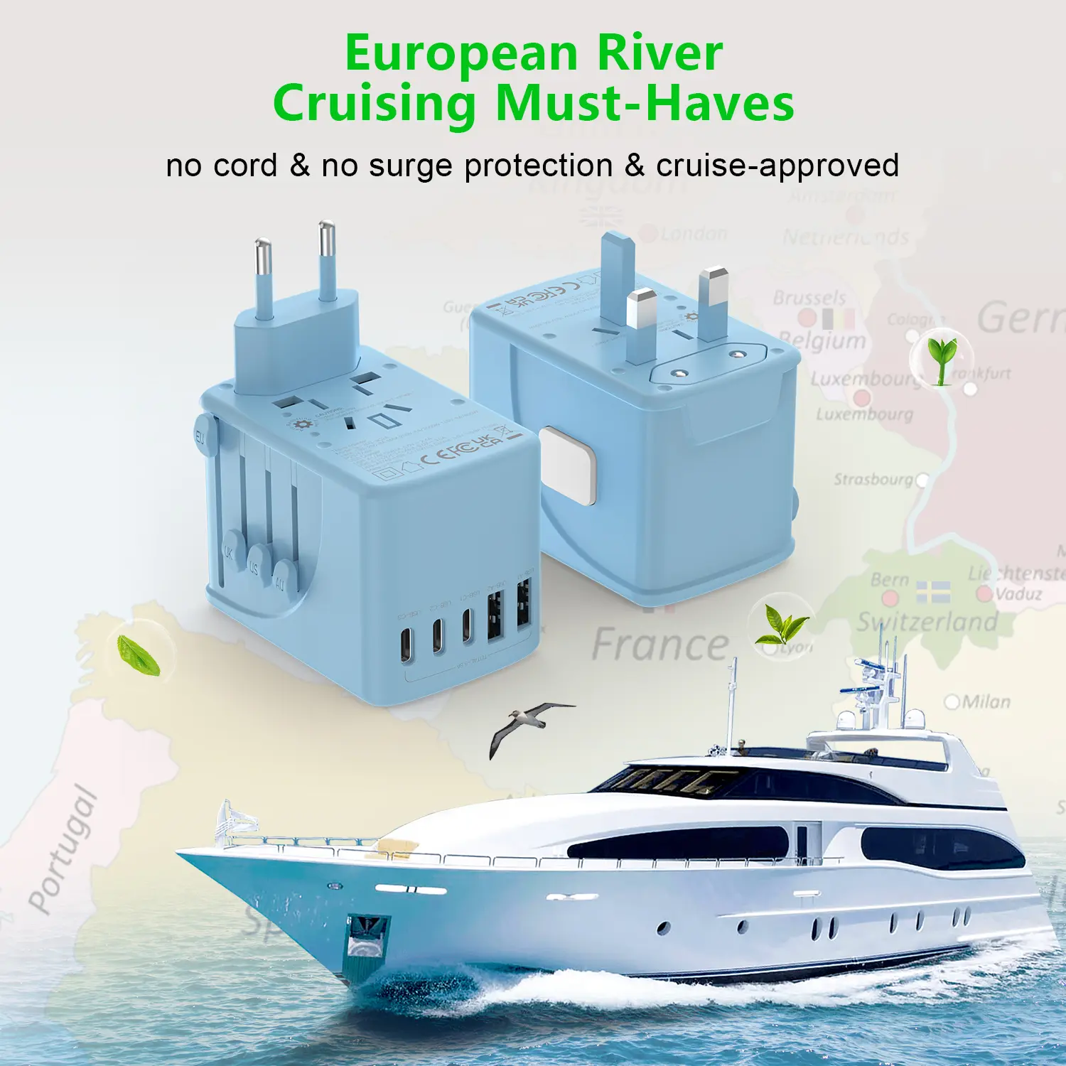 This travel adapter covers over 150 countries, including France, Germany, UK, USA, and more. It supports US/EU/UK/AU plugs, making it suitable for worldwide travel. Ensure your US appliance supports dual voltage (100-250V) for safe use. 🌍