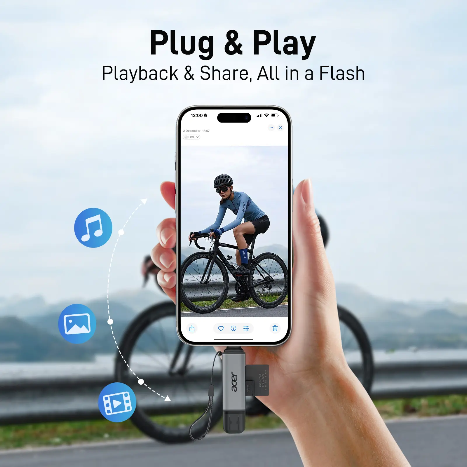 ·【Wide Device Compatibility】The USB C SD Card Reader works seamlessly with PCs, computers, laptops, cameras, smartphones and tablets featuring USB-C or USB-A ports, including MacBook Air/Pro, XPS, iPhone 15/16, iPad Pro, Samsung Galaxy S23, Microsoft Surface, Acer Aspire, and Predator series. Perfect for quickly accessing files directly on your device without additional apps or internet connections(Note:Not compatible with “Lightning” port devices)