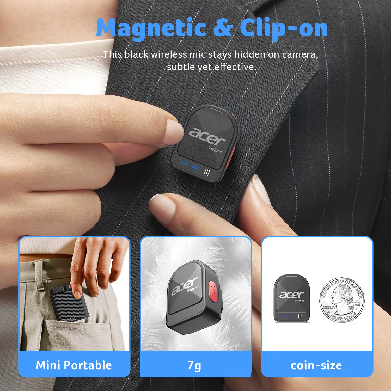 The Acer Gadget has a compact form factor, I like that. Also, having both adapters is nice, appl & droid. The magnets are super strong. A leafblower was going, then a loud car... it handled it all! One mic magnet came off, not a big deal. I can glue it back on, its still solid product. #reedalexkw