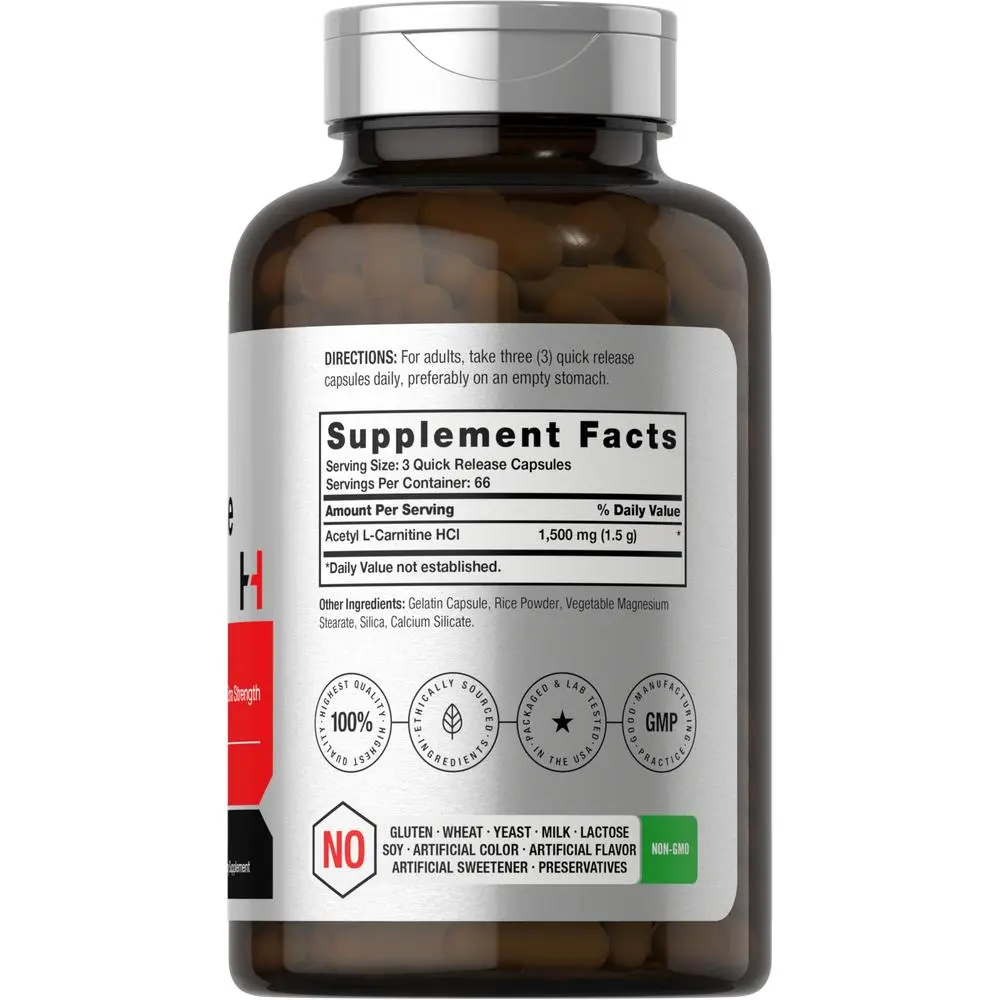 Horbaach's advanced formula is scientifically designed to feature 1500 MG of Acetyl L-Carnitine HCl per serving in convenient quick release capsules. It's gluten free and non-GMO, delivering just what you need to help meet your lifestyle goals. Enjoy our 200-capsule supply!