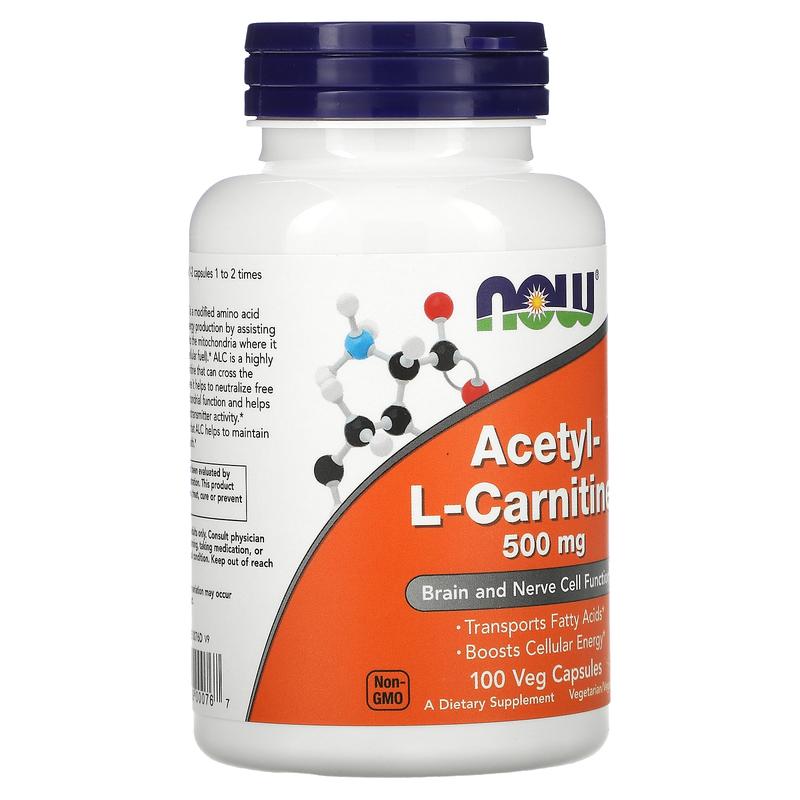 NOW Foods Acetyl-L-Carnitine, 500 mg, 100 Veg Capsules
