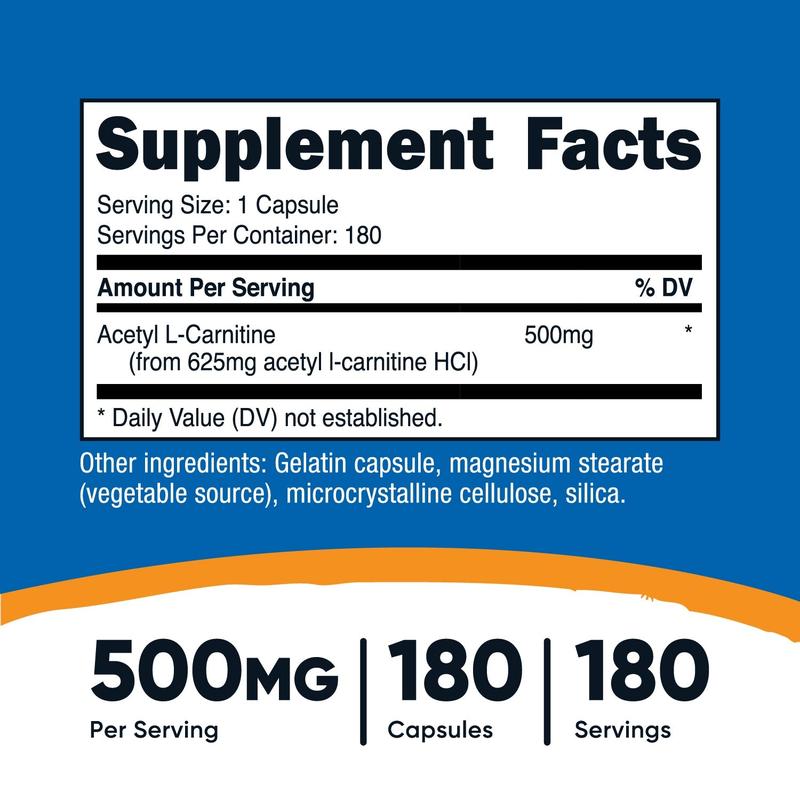 ·180 capsules per bottle: With 180 capsules in each bottle, you have a generous supply of Acetyl L-Carnitine to last you for an extended period, allowing for consistent usage.