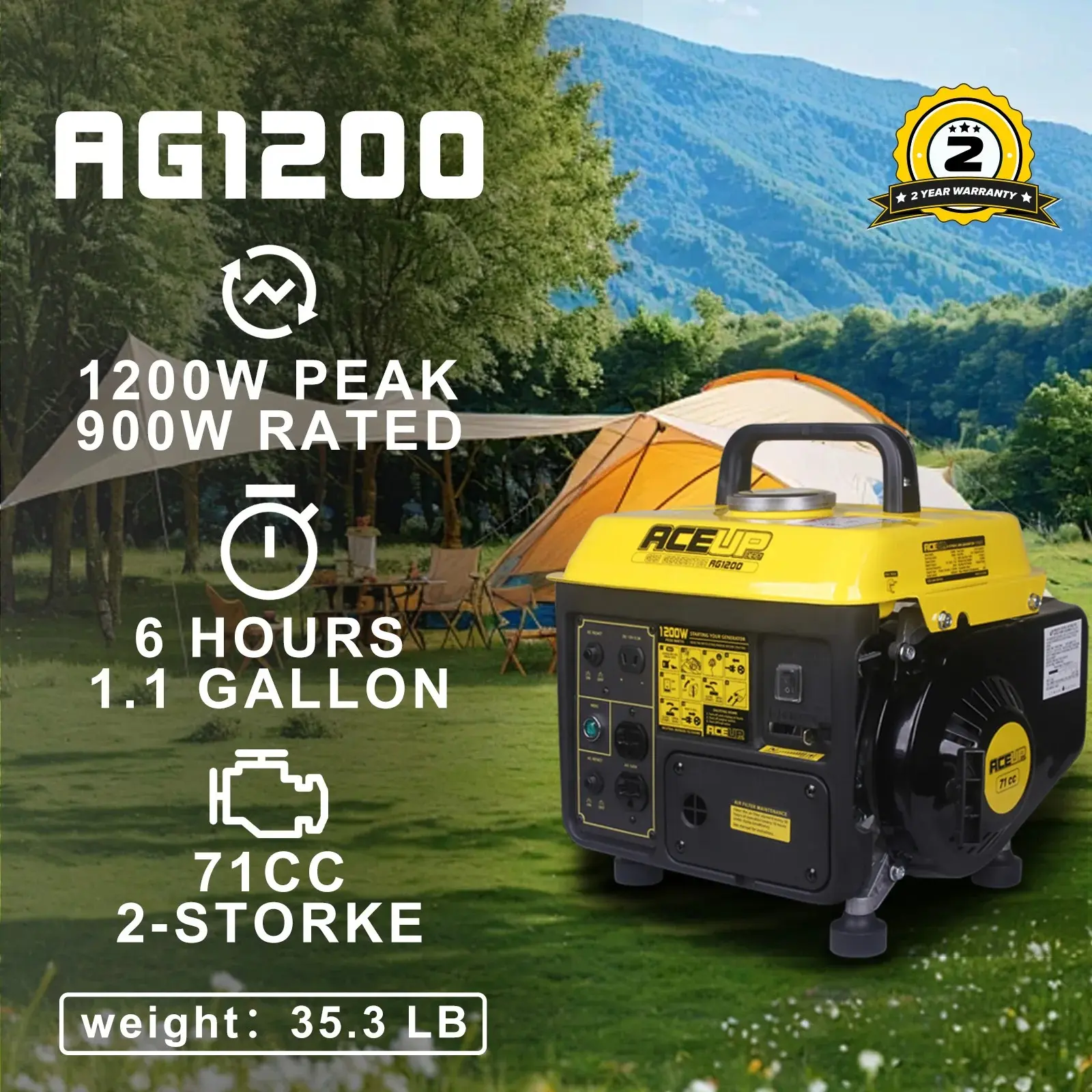 Aceup Energy 1200W 2-Stroke Portable Gas Generator AG1200 Small Ultralight Camping EPA & CARB Compliant